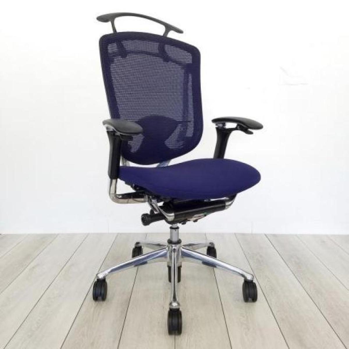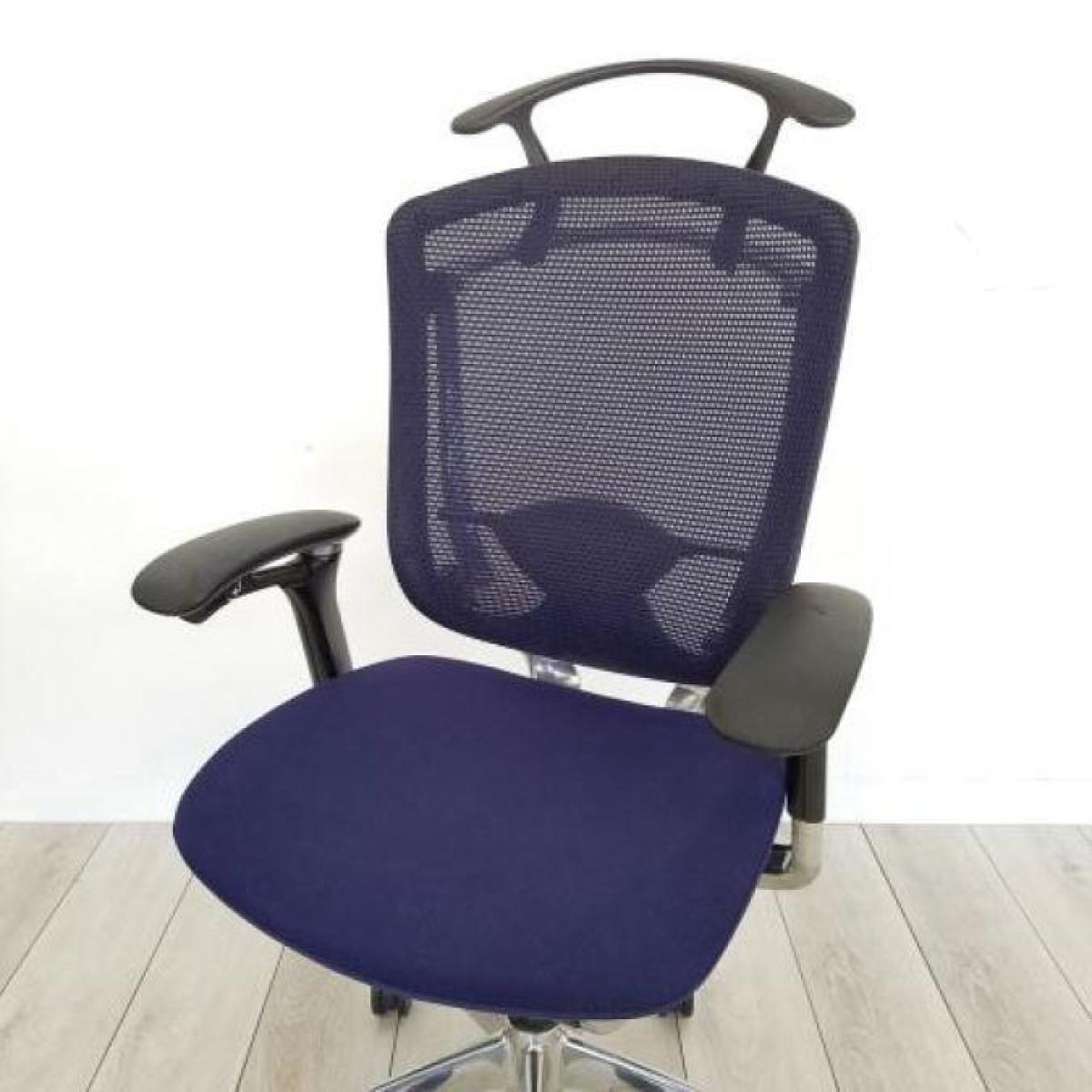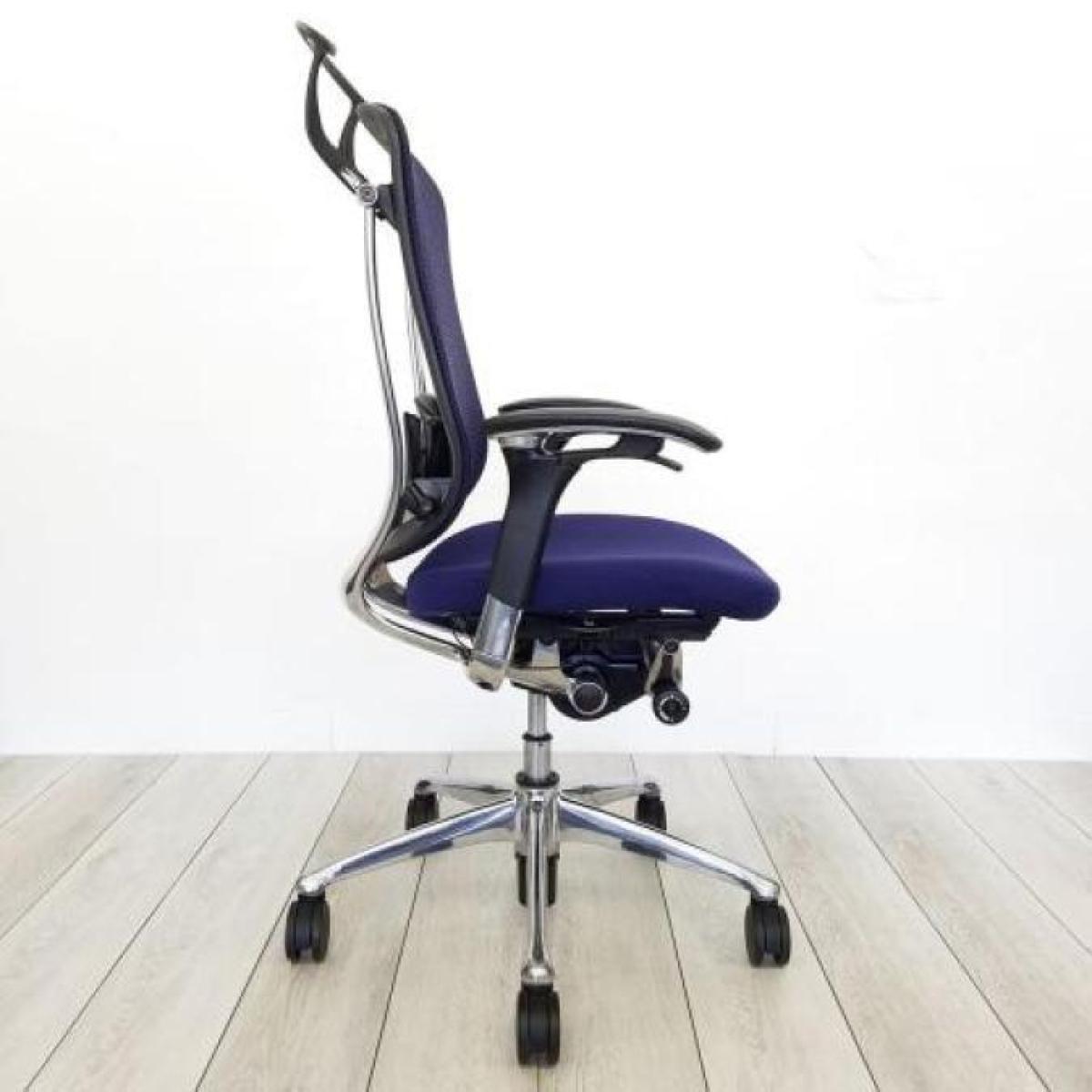 ★人気のヘッドレスト付タイプ入荷!【人間工学に基づいた快適な座り心地!】■オカムラ コンテッサチェア 可動肘付 ダークブルー 小型ヘッドレスト付 ポリッシュ ■【世界で認められた革新的タスクチェア!】【Okamura Contessa】