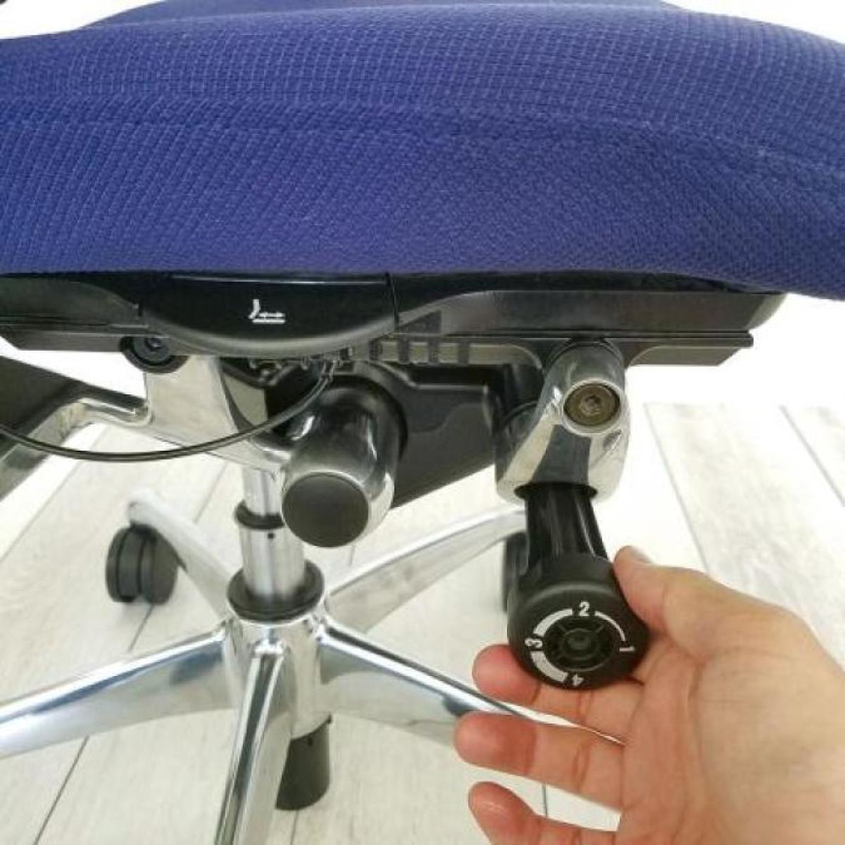 - ロッキングの強弱を調整するダイヤルがございます。体型に合わせてリクライニングの固さを座ったままで調整できます。
