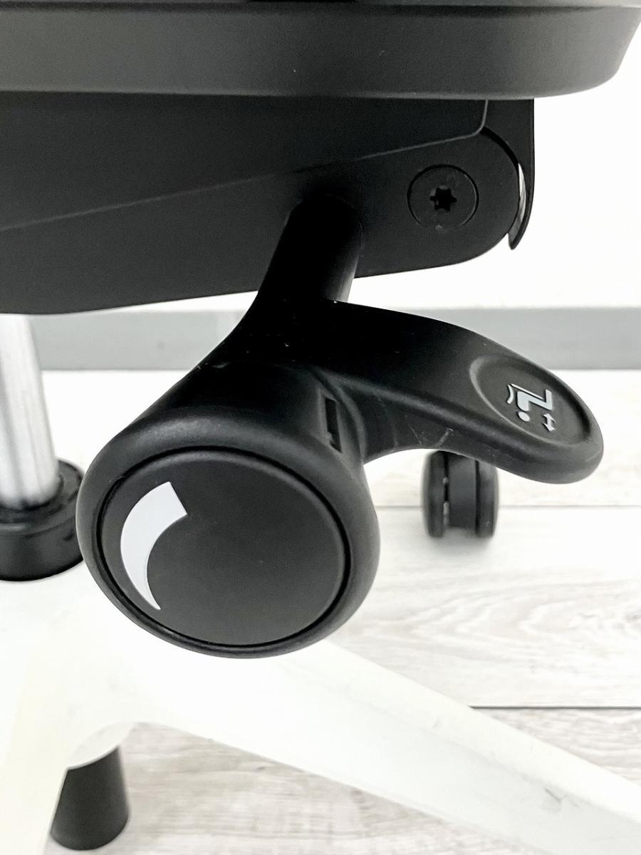 - 座面左下のダイヤルでリクライニングの固定と解除が行えます。 前傾ポジションをとることも可能です。