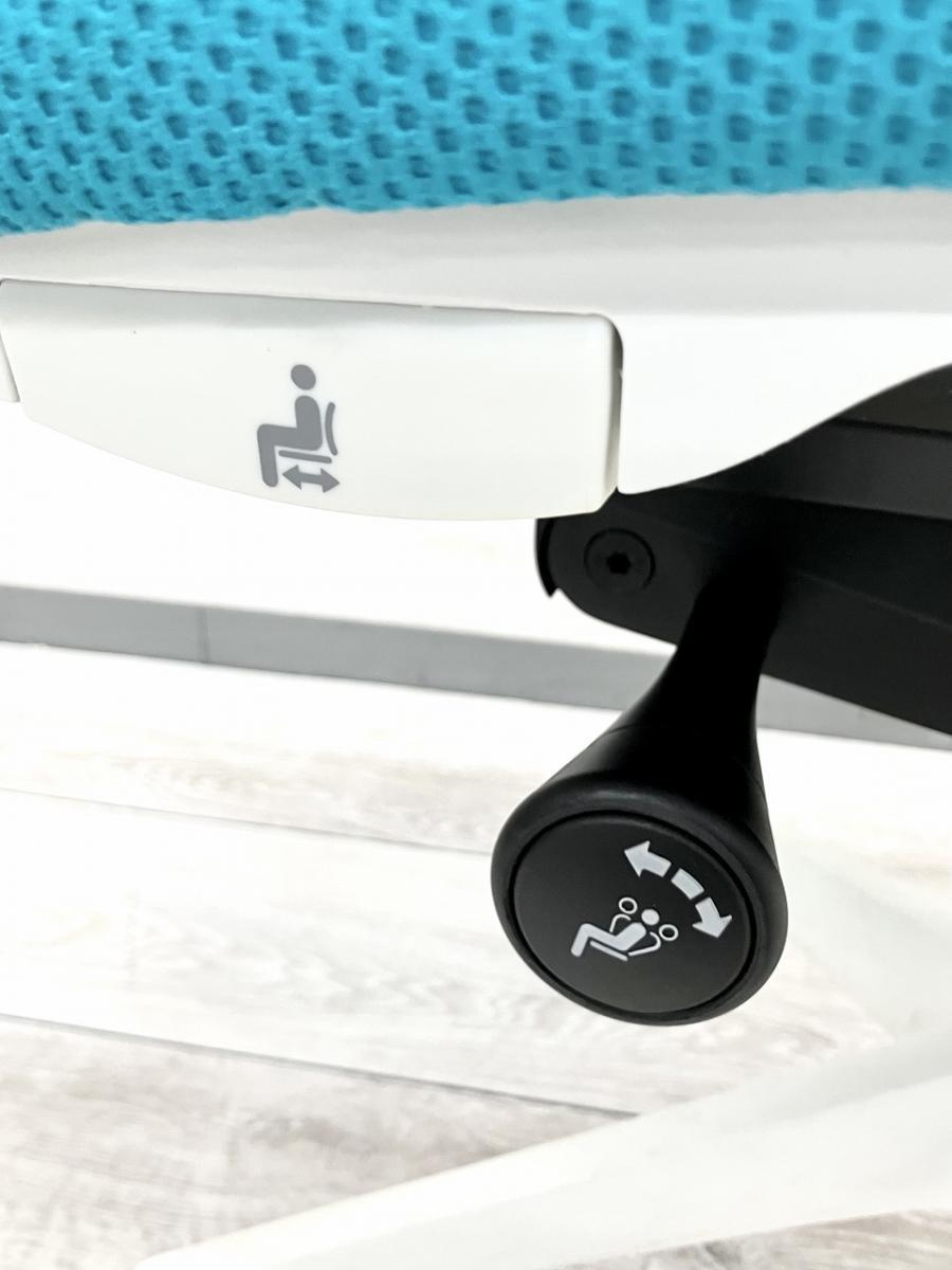 - 座面右下のダイヤル操作で、リクライニングの強弱調整が行えます。これまでのダイヤル式よりも、少ない回転数で、最弱?最強の調整が可能です。