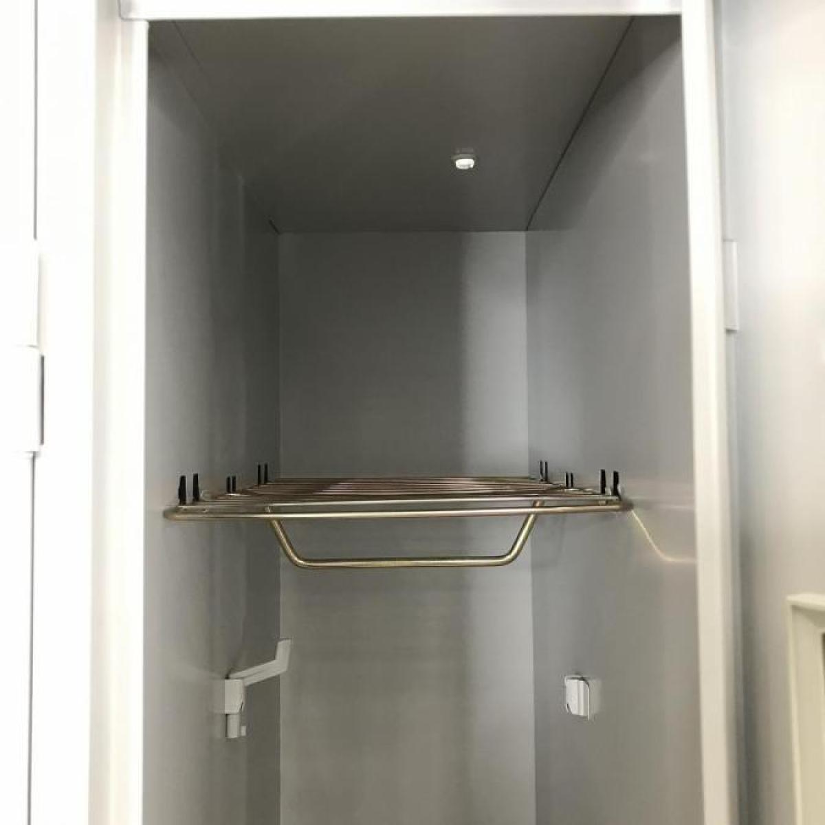 - 完備鏡、ネクタイ掛け、傘立て、網棚、フック等が全て完備されている。