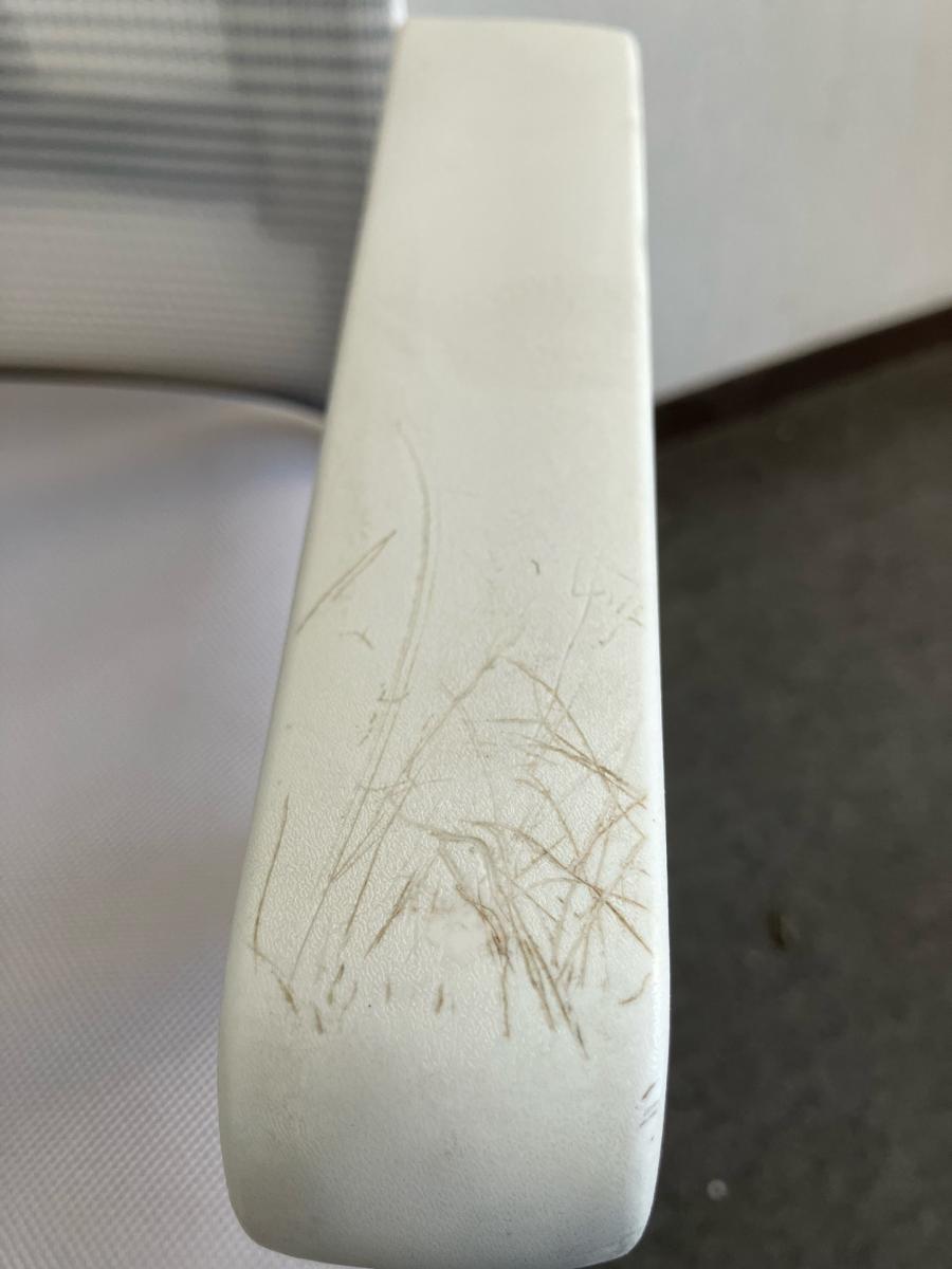 - 目立つ箇所あり傷・破れ・ほつれ・へたり・しわが多数または深い傷・破れ・ほつれ・へたり・しわが一部ある。※座面・背もたれ、シェル、脚部等にある。