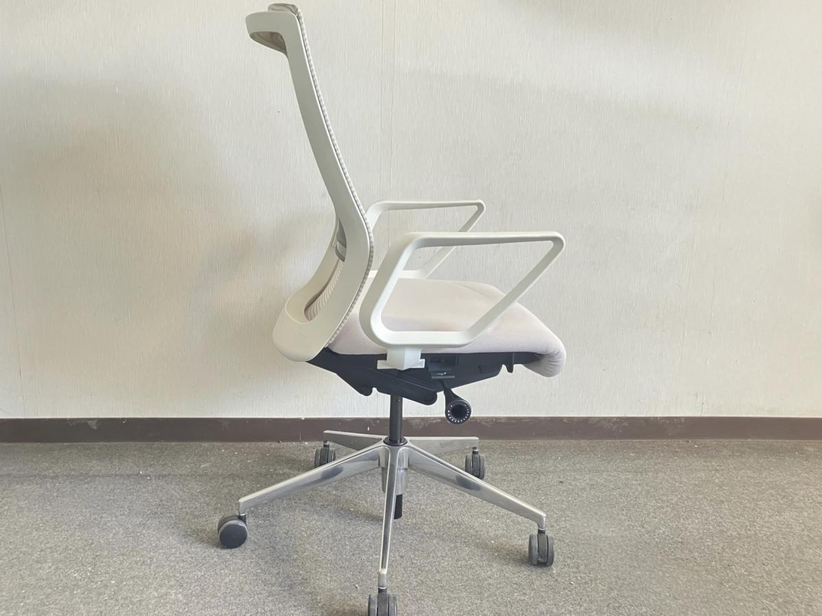もちろん見た目だけでなく、オフィスでの使いやすさも考えられています。例えば、普通のチェアでは離着席時に背もたれを持つので、背もたれの上部が少しずつ汚れてきます。しかし、エルフィでは、背もたれのフレームに取っ手がついており、それを押し引きできるので、クッションやメッシュを汚すことなく綺麗な状態で長くお使いいただくことができます!