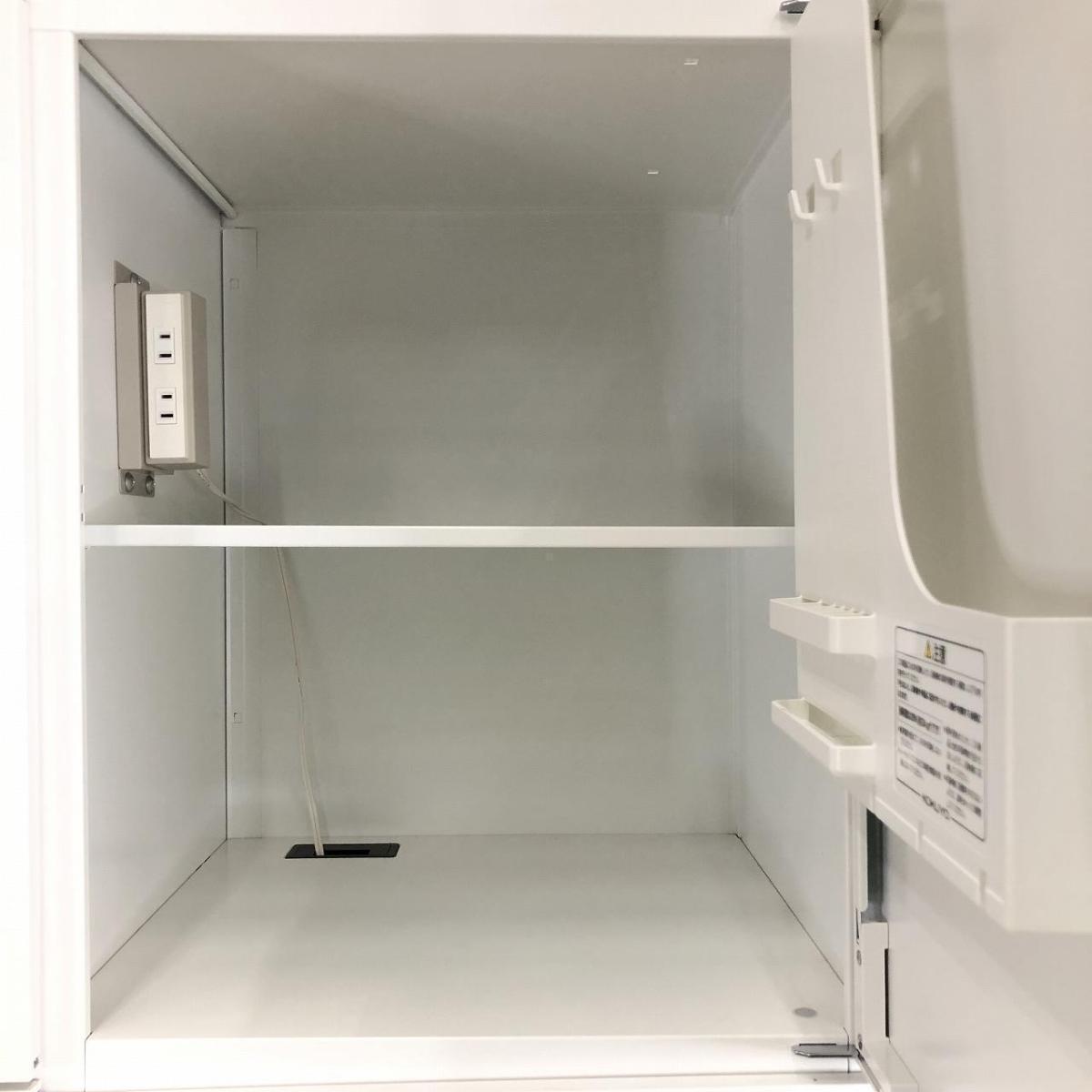 各部屋に棚板、右部屋にはコンセントが装備されており、