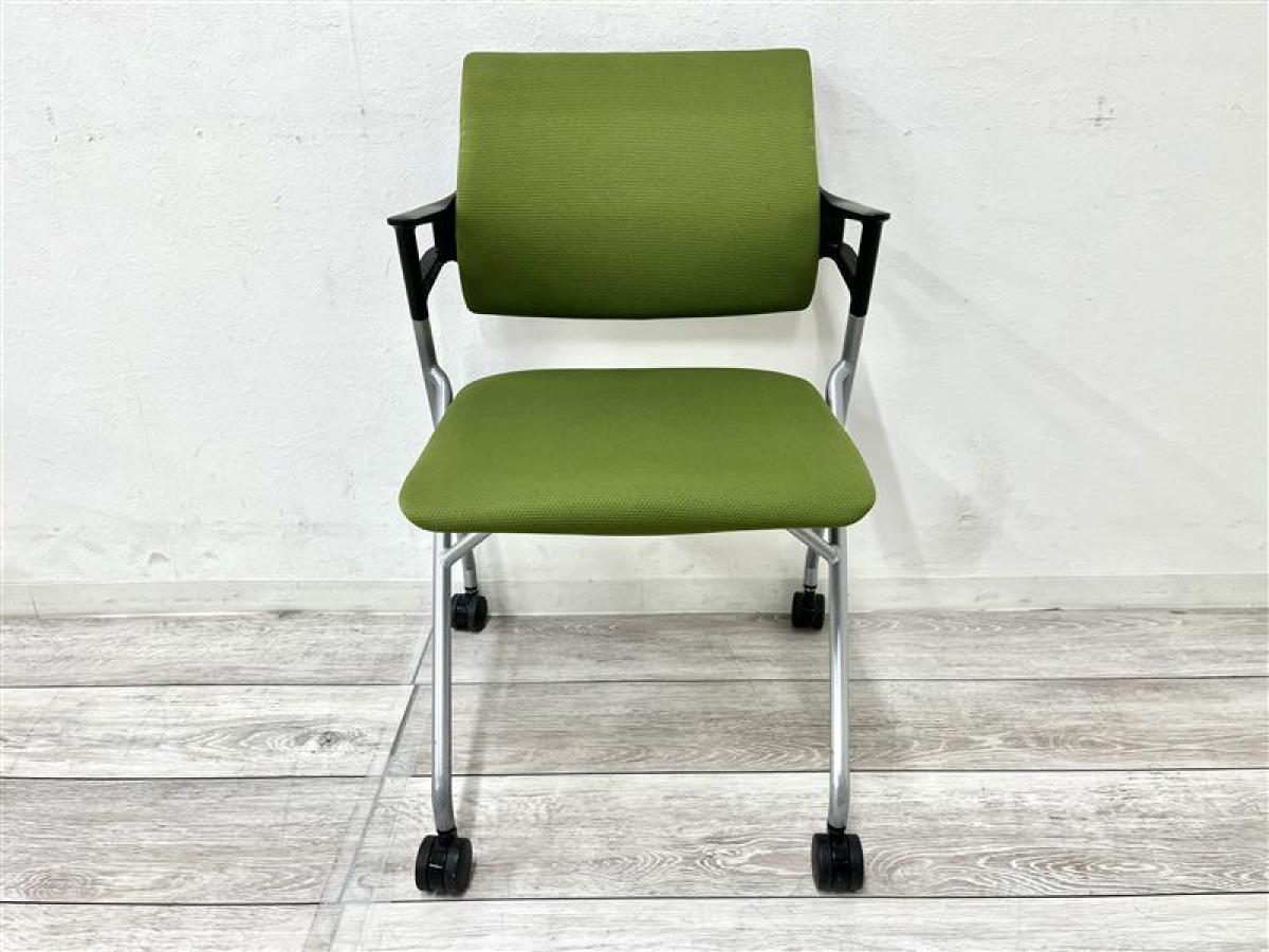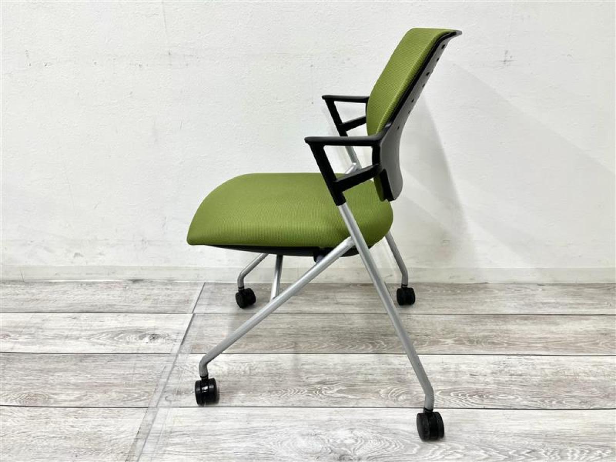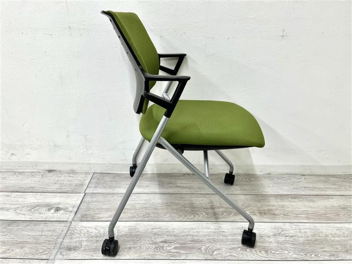【スタイリッシュなデザインで座りやすい!】■コクヨ ピエガシリーズ ネスティングチェア グリーン キャスター付 ■楽な姿勢をキープできる!肘付ミーティングチェア!【KOKUYO Piega】【ABW】- 川崎店