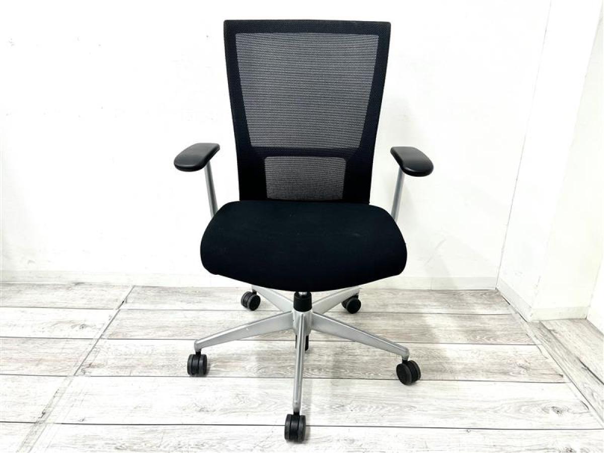 【アルミフレームのシャープなデザイン!】■コクヨ製 フォスターカリノチェア 肘付 ハイバック 背面メッシュ ■固定肘 ■色:ブラック