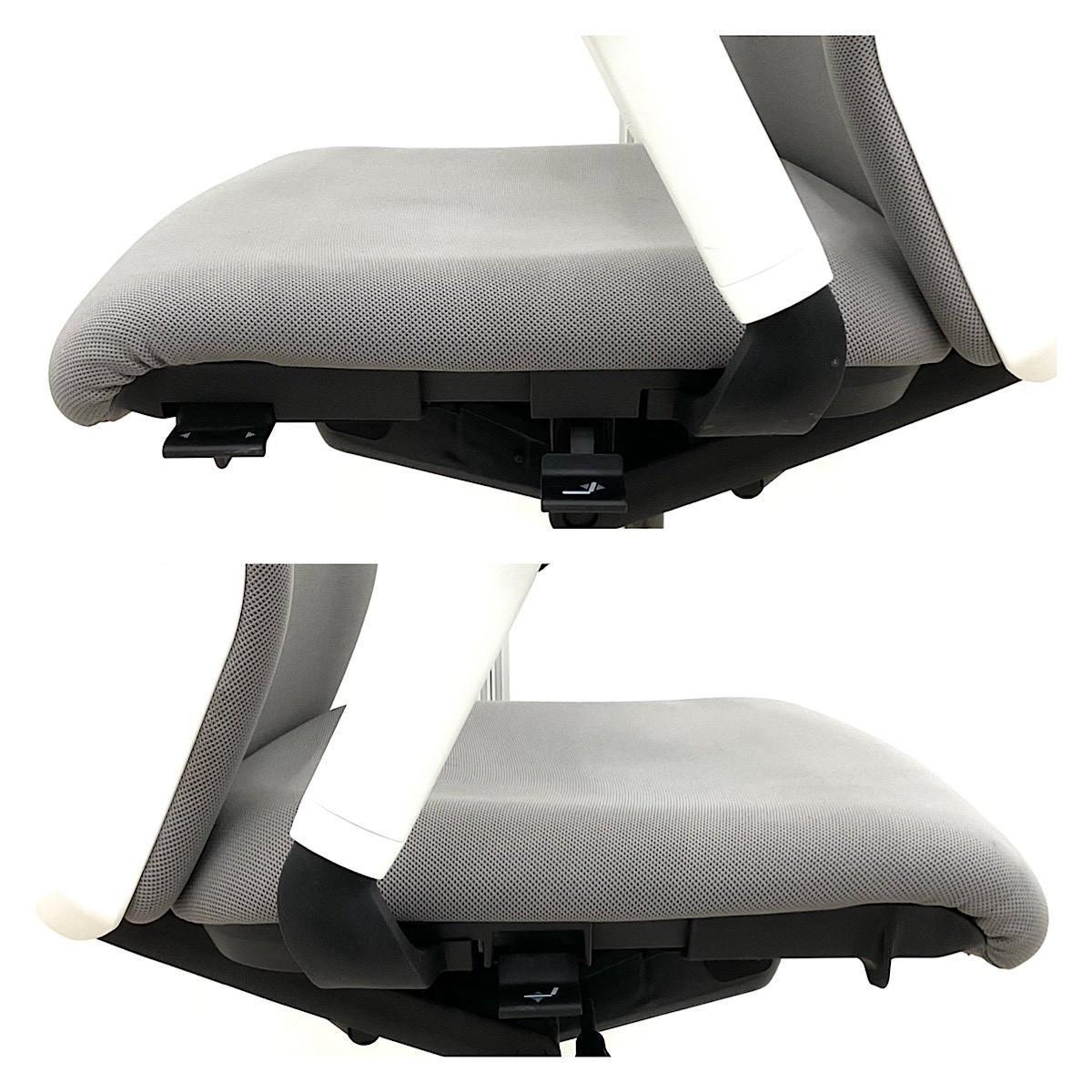 また、個人的にオススメなのは『フルアジャスタブル肘』というアーム部分が斜め前に伸びていくタイプの肘置きを搭載したモデルです。高さを上げれば上げるほどパッドが前方に迫り出していくので、デスクワークの際にちょうど肘を置きたい場所に肘置きがきます。これがとても快適なので、ぜひ一度お試しいただきたいです!*エルフィチェアの肘パーツはフルアジャスタブル肘の他に、固定肘、アジャスタブル肘などがあります。