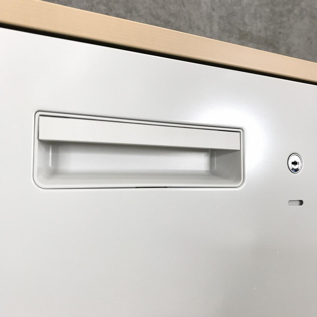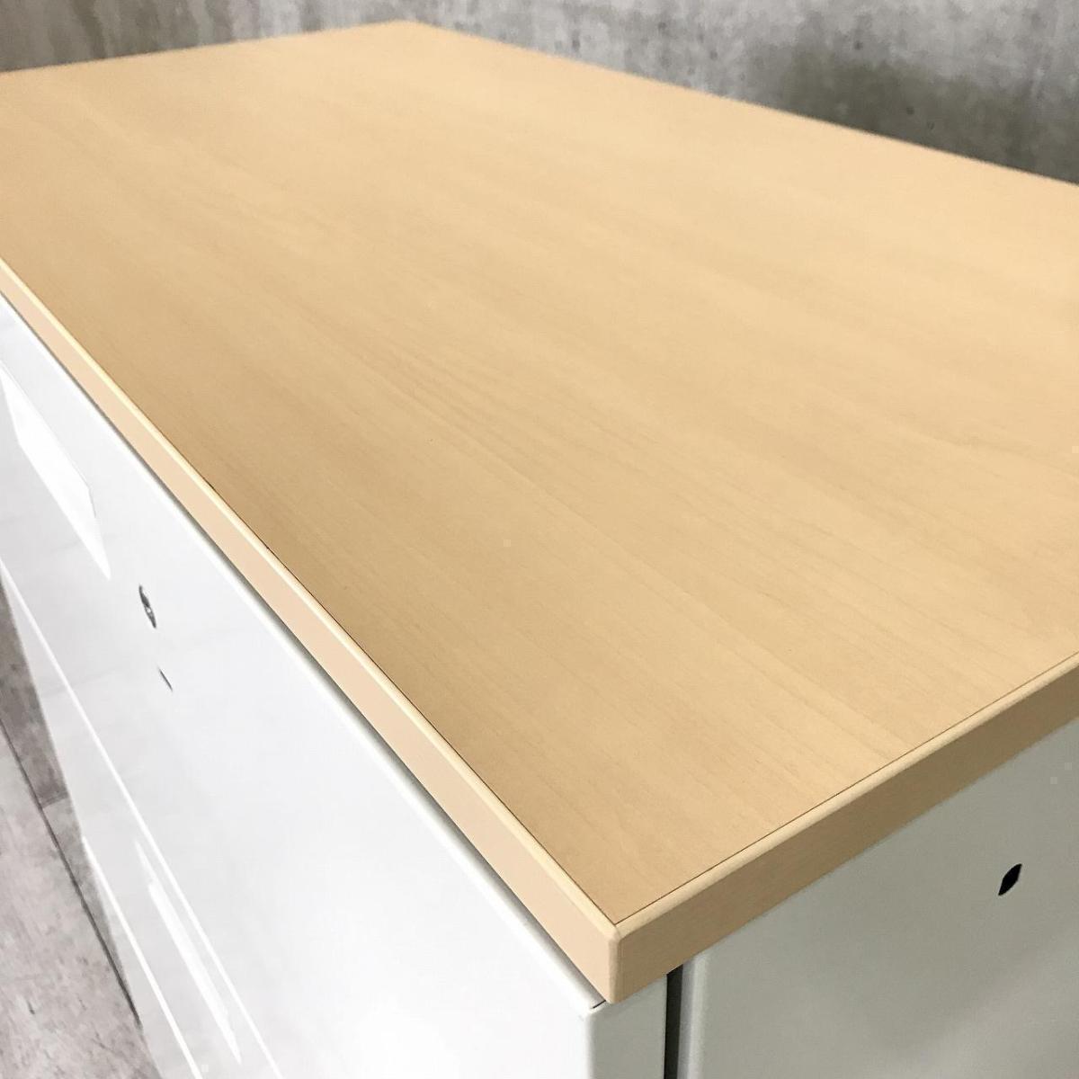 【定価約9万円】【ナチュラル調天板がついた、人気の引き出し式書庫!】■プラス(PLUS) L6シリーズ 3段ラテラル ローキャビネット ■ホワイト ■ナチュラル木目調天板付き ■シリンダー錠