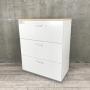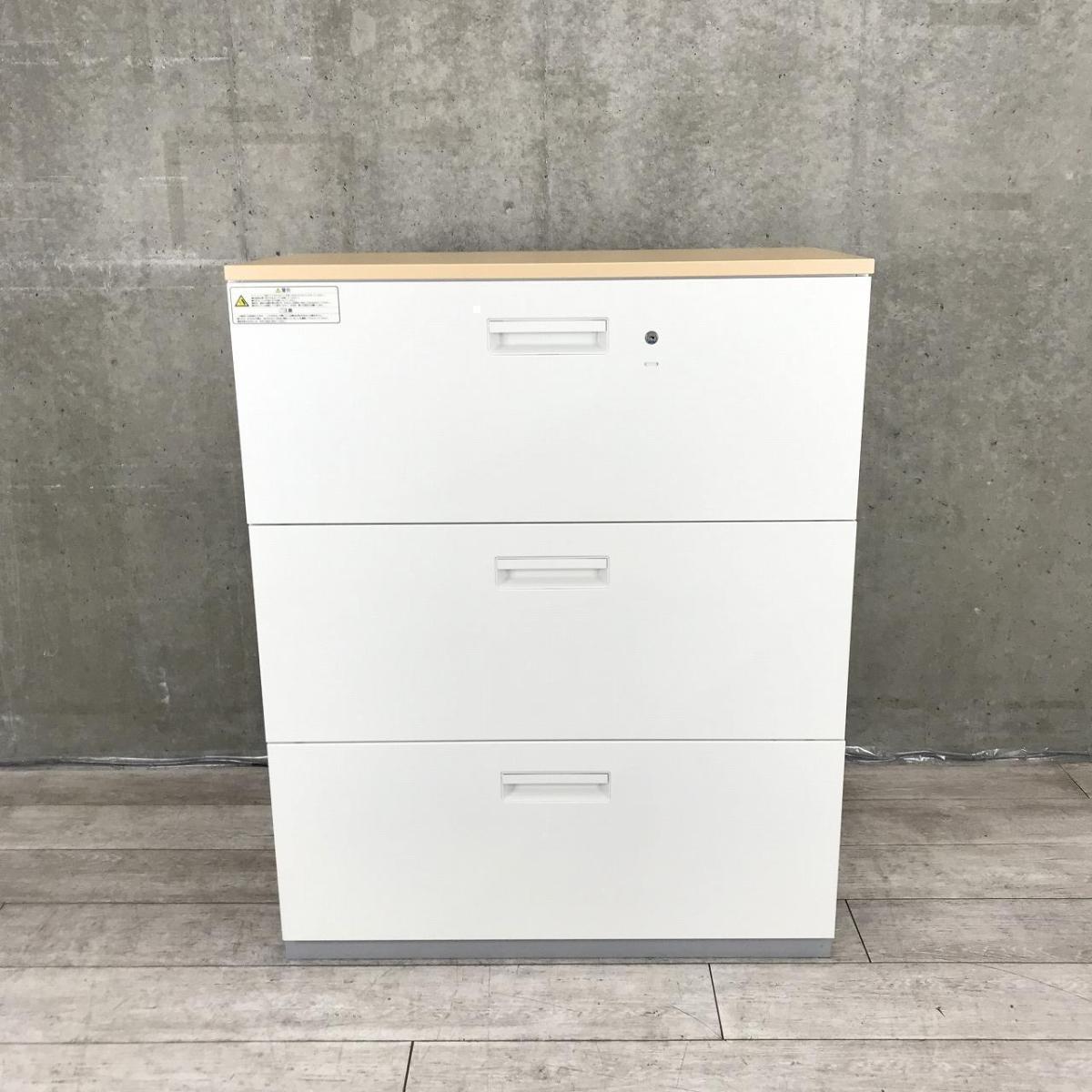 【定価約9万円】【ナチュラル調天板がついた、人気の引き出し式書庫!】■プラス(PLUS) L6シリーズ 3段ラテラル ローキャビネット ■ホワイト ■ナチュラル木目調天板付き ■シリンダー錠在庫がある店舗一覧