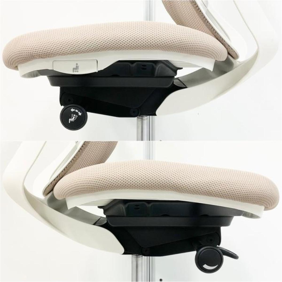 - 座面右下のダイヤル操作で、リクライニングの強弱調整が行えます。これまでのダイヤル式よりも、少ない回転数で、最弱?最強の調整が可能です。