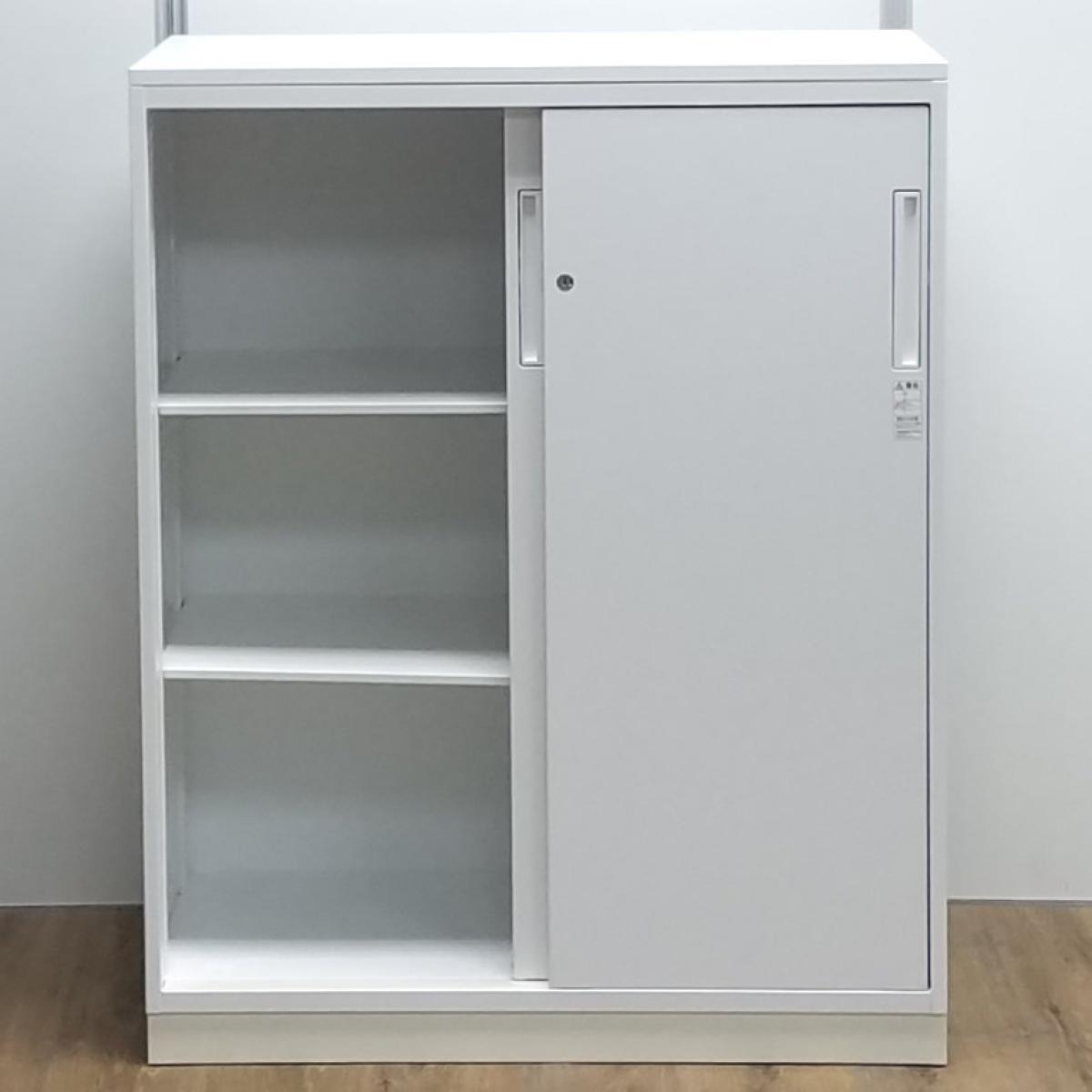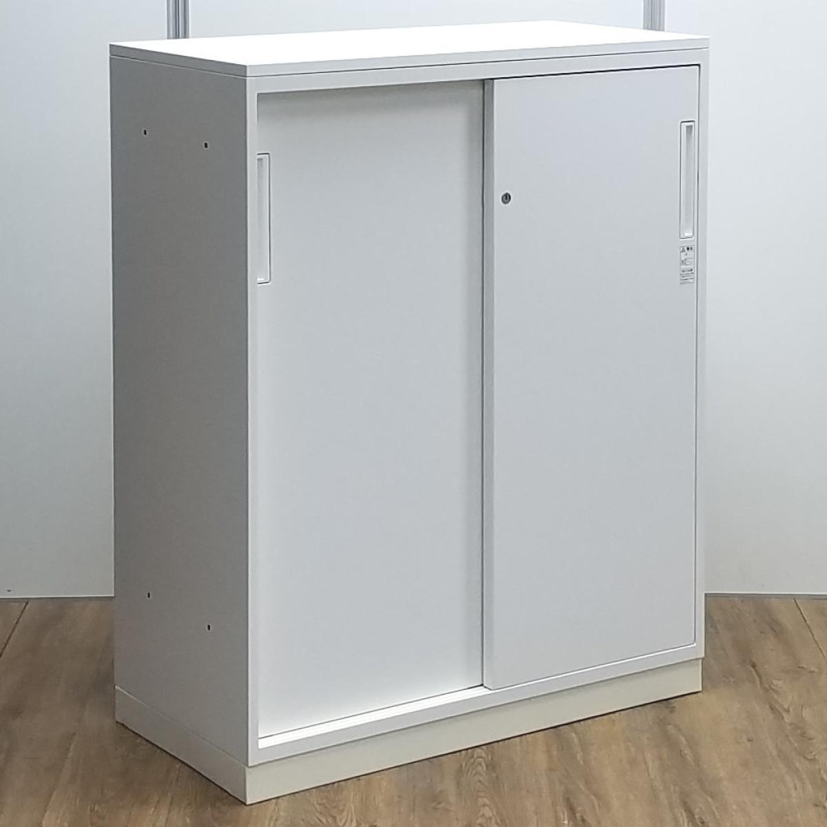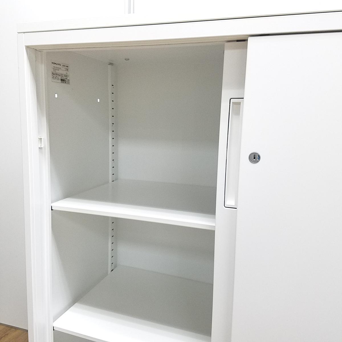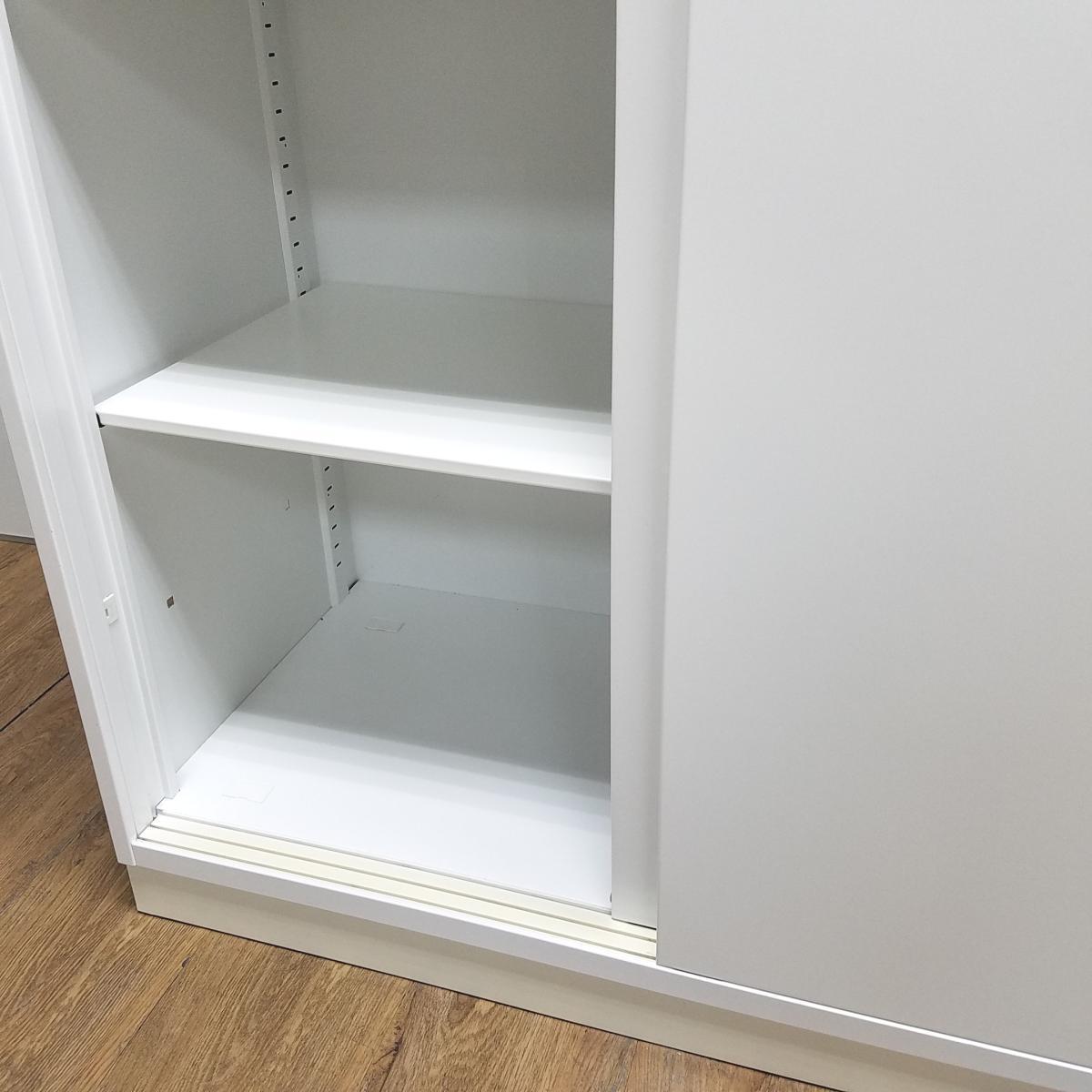 ★【T2】【商品入替のため、残り1台限り】コクヨ製 エディア ホワイト W900サイズ W900xD450xH1130サイズ シリンダー 書類の収納スペースを増やしたい方に! 通路脇にも設置可能な引き戸扉の書庫! ローキャビネット 2枚引き戸タイプ 引き違い書庫!!在庫がある店舗一覧