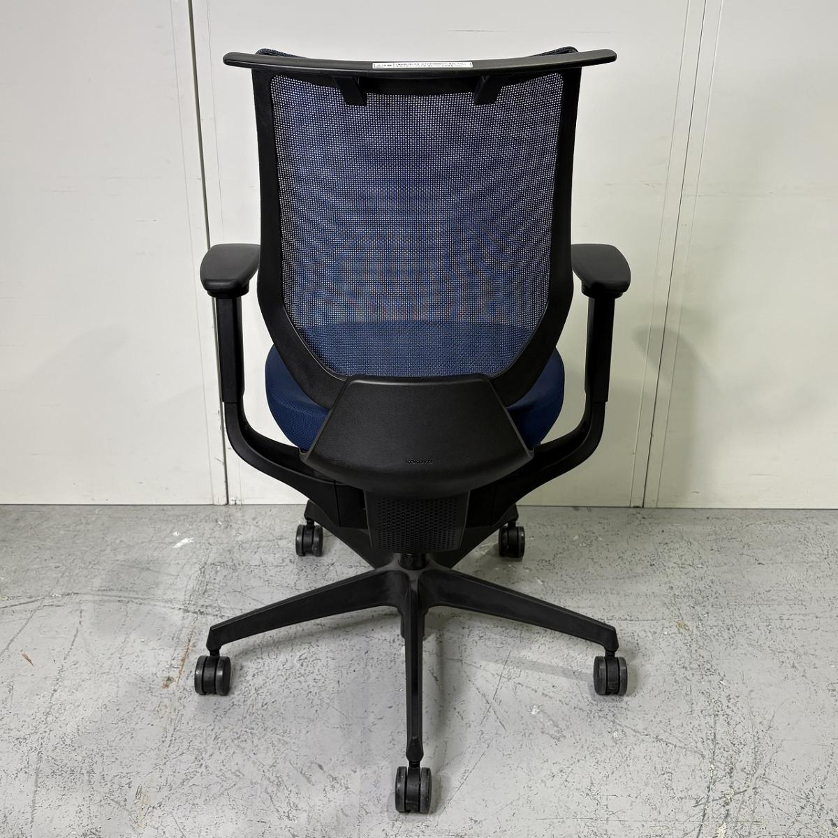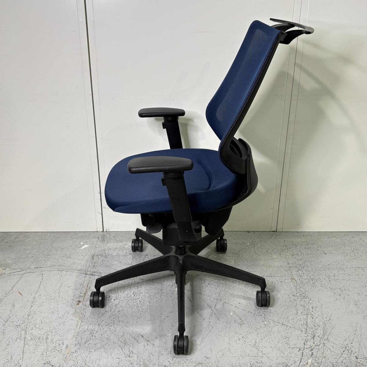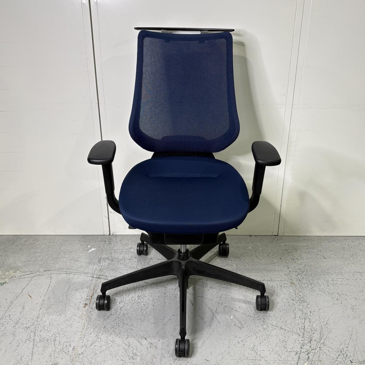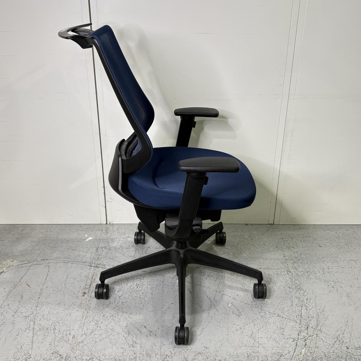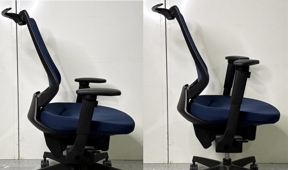 ★コクヨ製 イング ネイビーブルー 肘付き ハイバック バーチカルタイプ 背面メッシュ仕様 可動肘 樹脂脚 イスとひとつになれる新感覚! 揺れ動く座面で体幹も整える! 肘付きハイバックチェア!!サーキュラーバリューCO2削減量の算出について