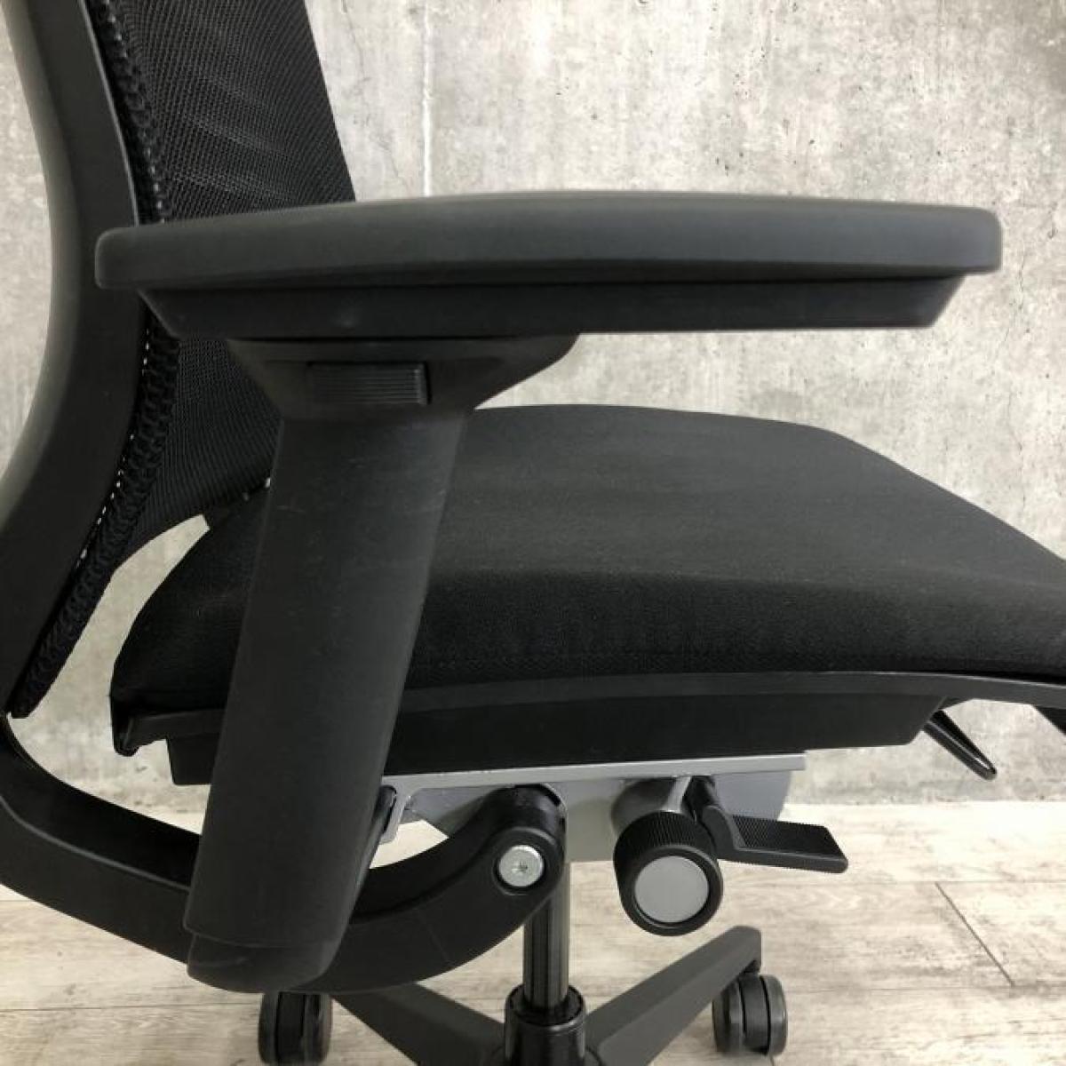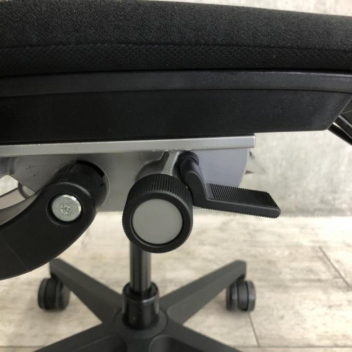快適な座り心地に不可欠な調節機能である、上下昇降、座面の奥行き調整、リクライニングなどを備えており、操作もわかりやすく好評です。 特に、座面の奥行きは、座面下の左右に通った細いバーで調整でき、座ったままで軽やかに滑るように調整が可能です。 価格面では、新品では高めですが、中古は流通も多く、定価の3割前後の価格で高級チェアの座り心地を手に入れることができます!