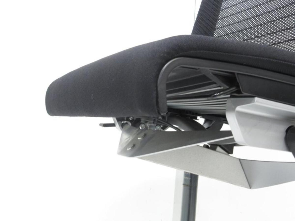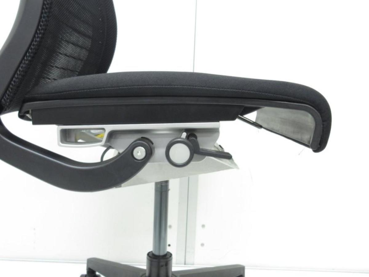 快適な座り心地に不可欠な調節機能である、上下昇降、座面の奥行き調整、リクライニングなどを備えており、操作もわかりやすく好評です。 特に、座面の奥行きは、座面下の左右に通った細いバーで調整でき、座ったままで軽やかに滑るように調整が可能です。 価格面では、新品では高めですが、中古は流通も多く、定価の3割前後の価格で高級チェアの座り心地を手に入れることができます!