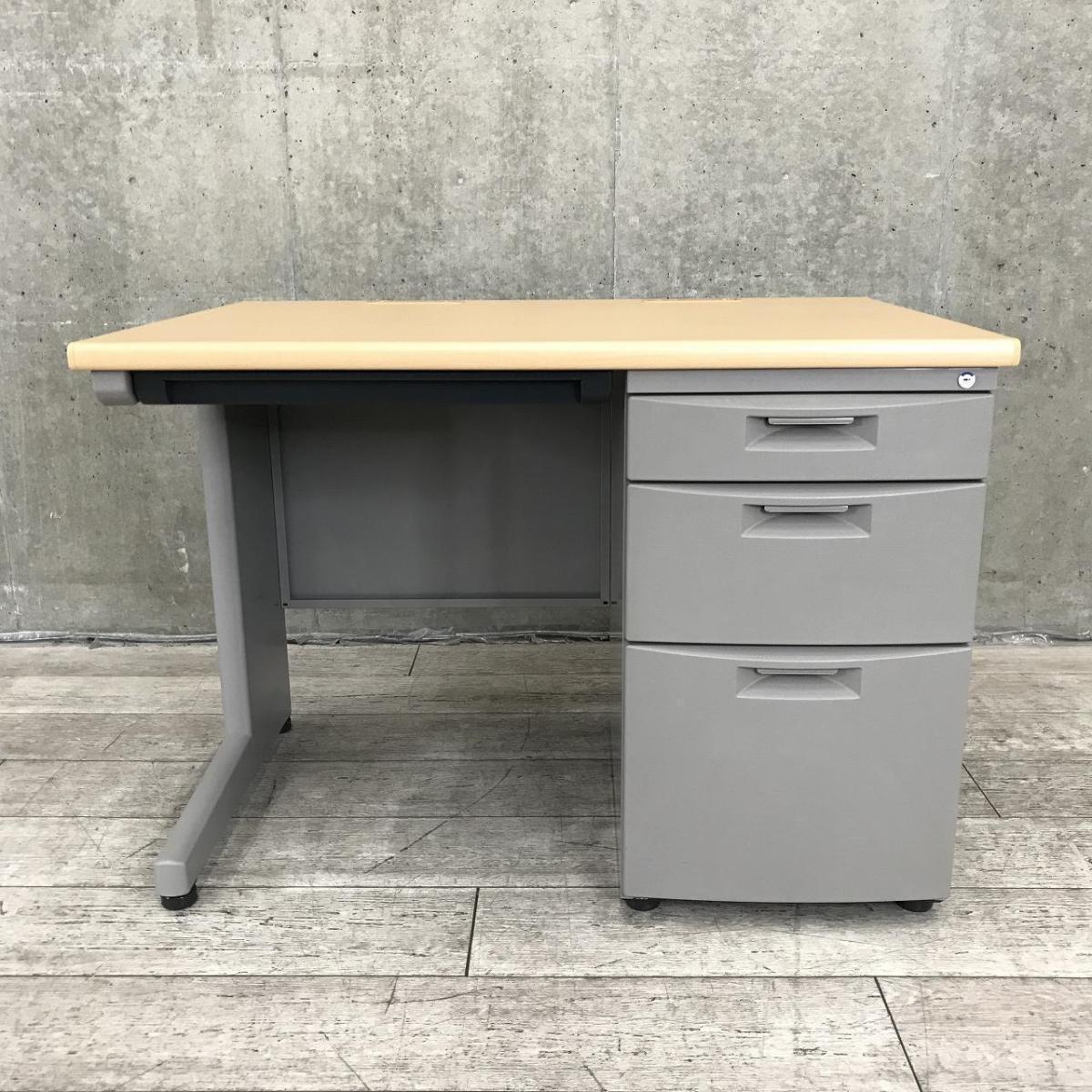 【在庫入替セール品】■イトーキ(ITOKI)製 CZNシリーズ 片袖机 ■W1000㎜ ■本体:ホワイトグレー 天板:木目調ナチュラル ■シリンダー錠