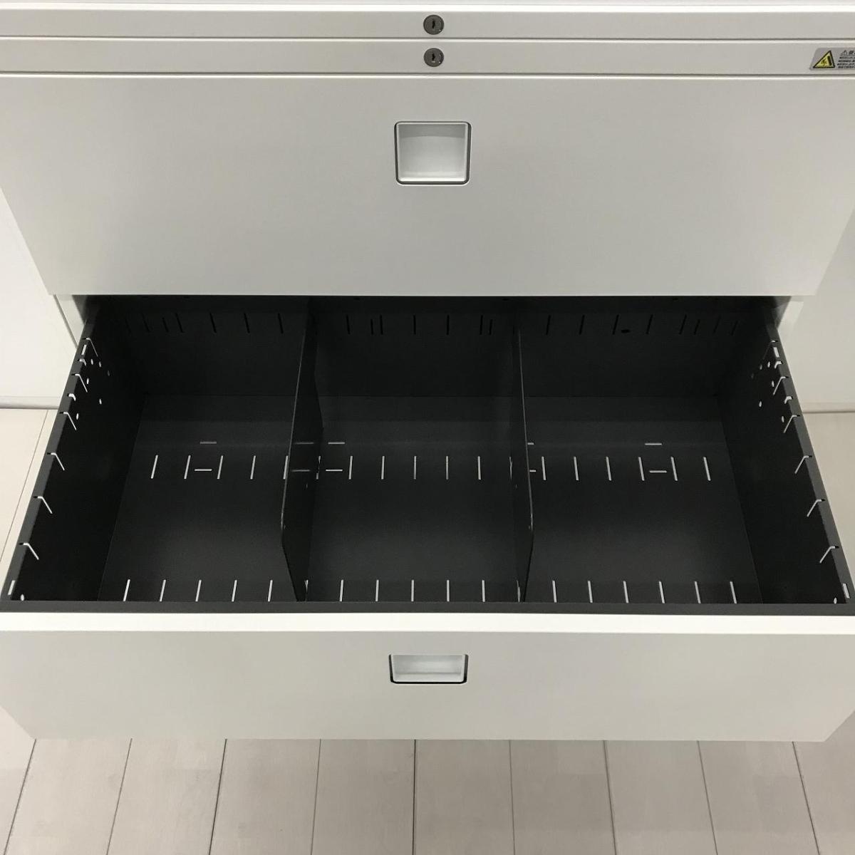 下置きのラテラル書庫にはファイル書類が豊富に収納できます。