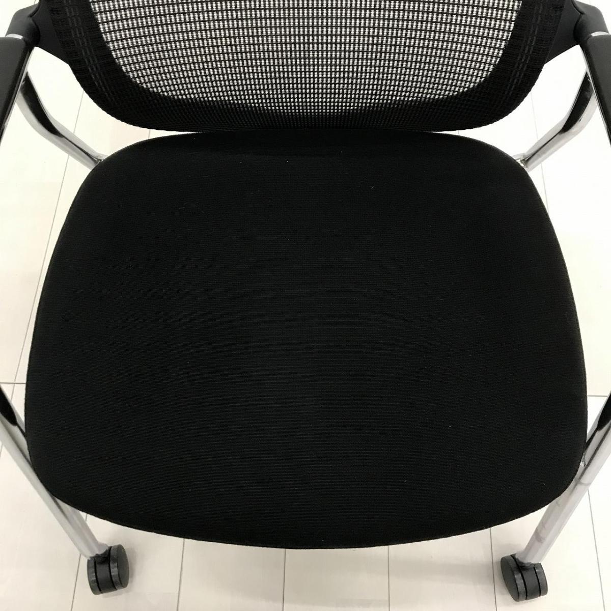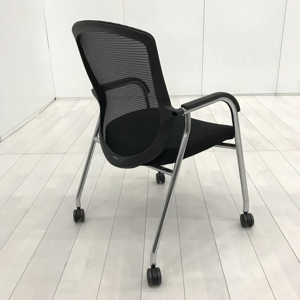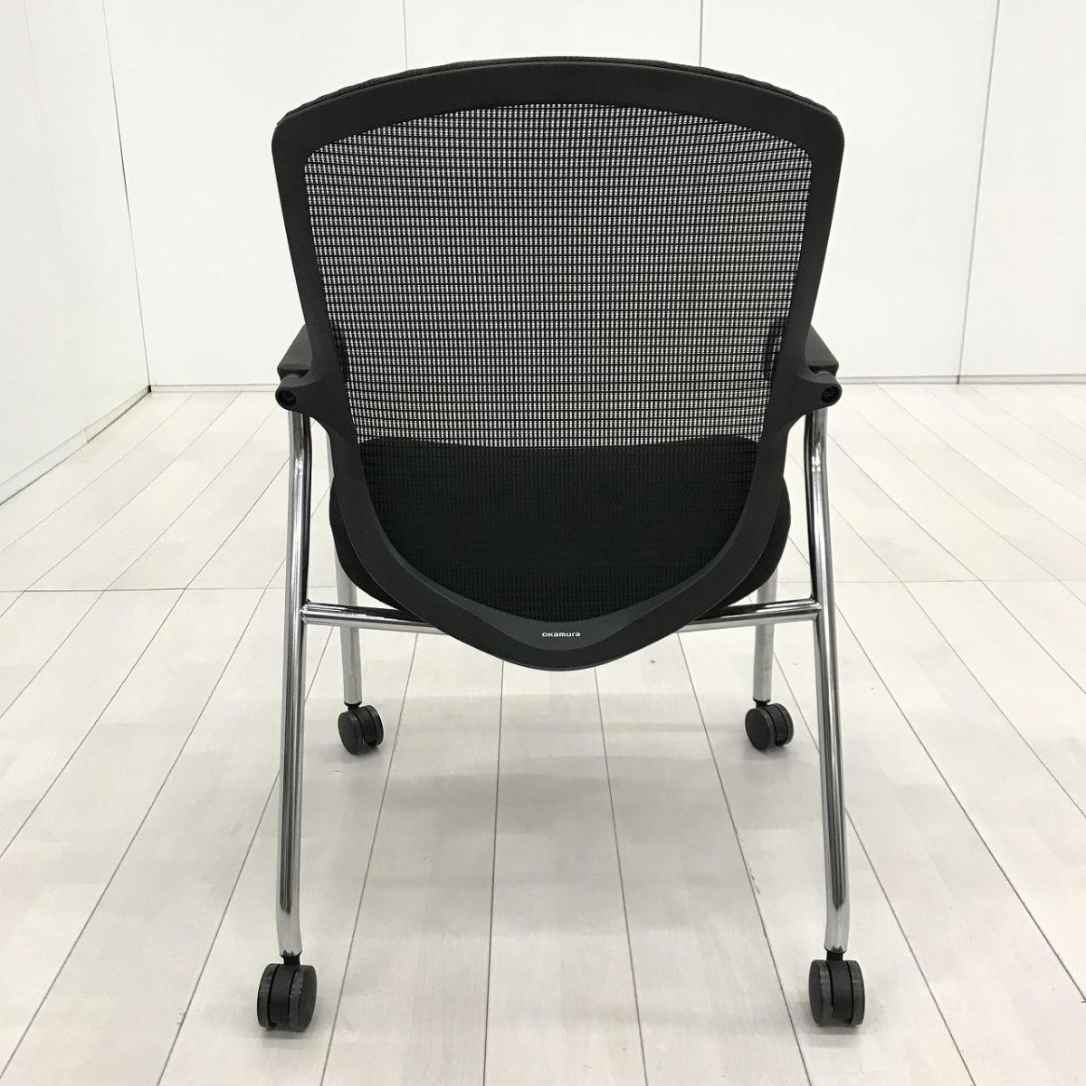 【オフィシャルな空間にふさわしいデザイン!】■オカムラ コンテッサセコンダ ミーティングチェア 肘付 ブラック キャスター付 ゲストチェア【Contessa seconda】【ABW】- 川崎店