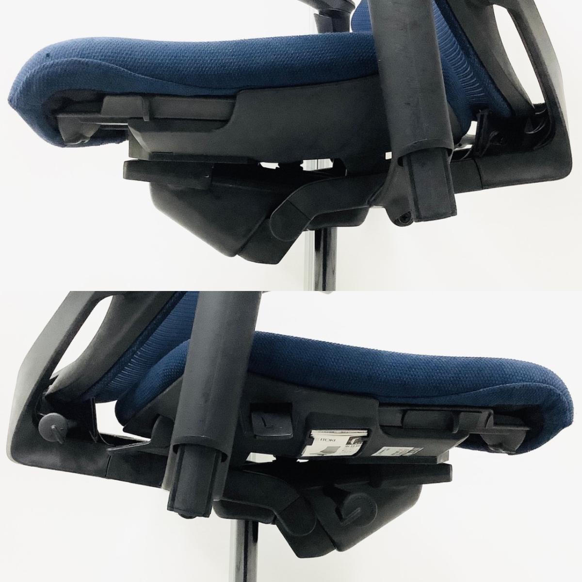 入替セール品につきお値下げ!【姿勢の変化にフレキシブルに対応!スタイリッシュで座り心地も抜群な高機能チェア!】■イトーキ(ITOKI)製 エフ(f)チェア 肘付き ハイバック 背面メッシュ ■可動肘 ■ネイビーブルー ×ブラックシェル
