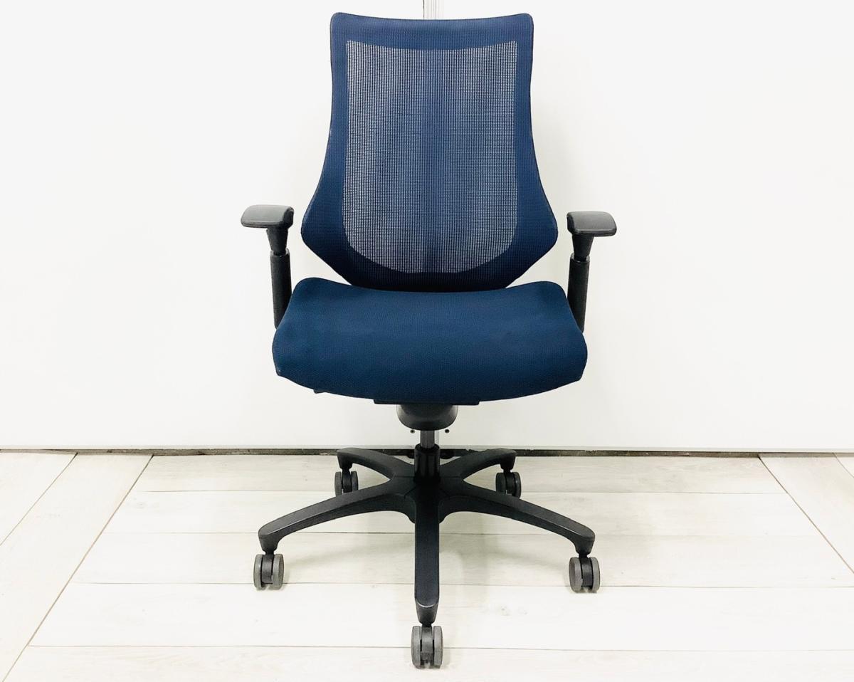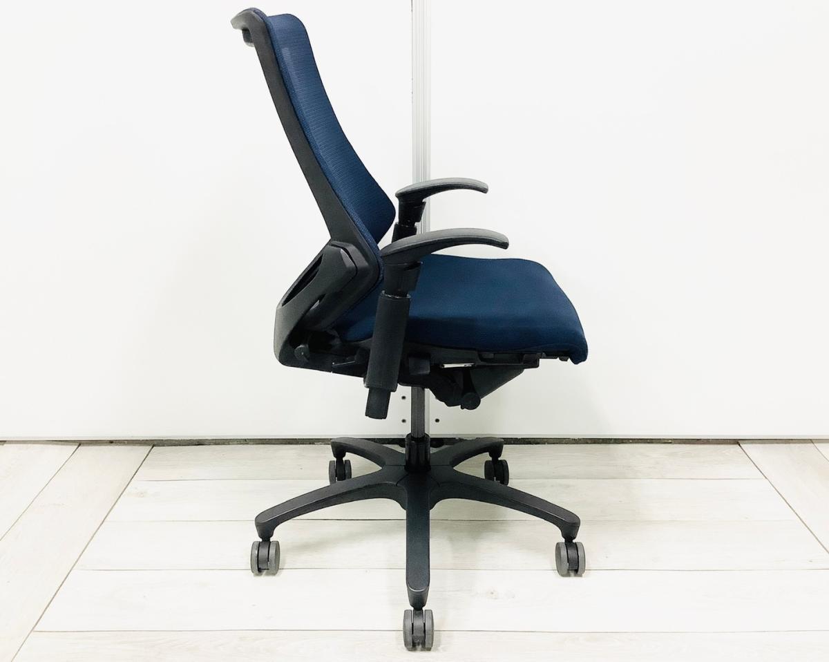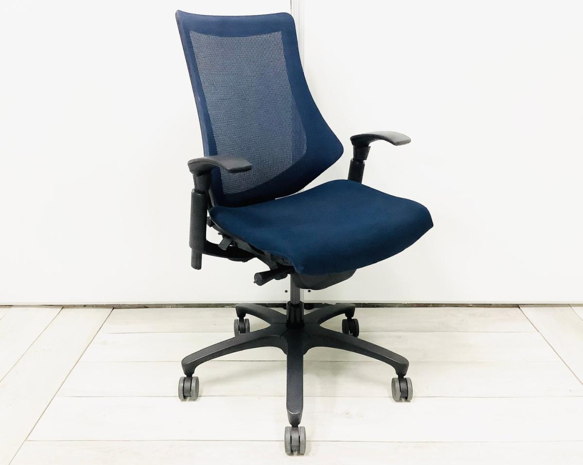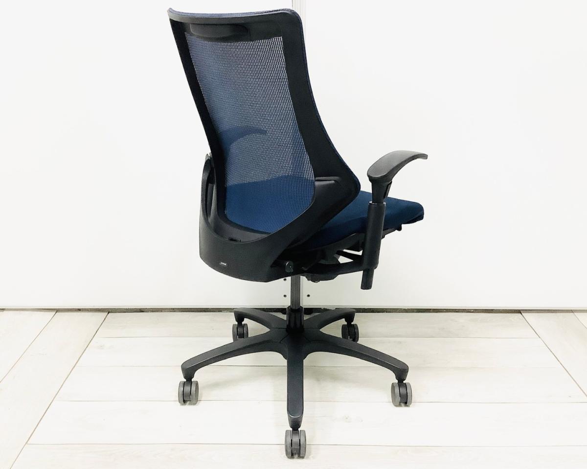 【姿勢の変化にフレキシブルに対応!スタイリッシュで座り心地も抜群な高機能チェア!】■イトーキ(ITOKI)製 エフ(f)チェア 肘付き ハイバック 背面メッシュ ■可動肘 ■ネイビーブルー ×ブラックシェル