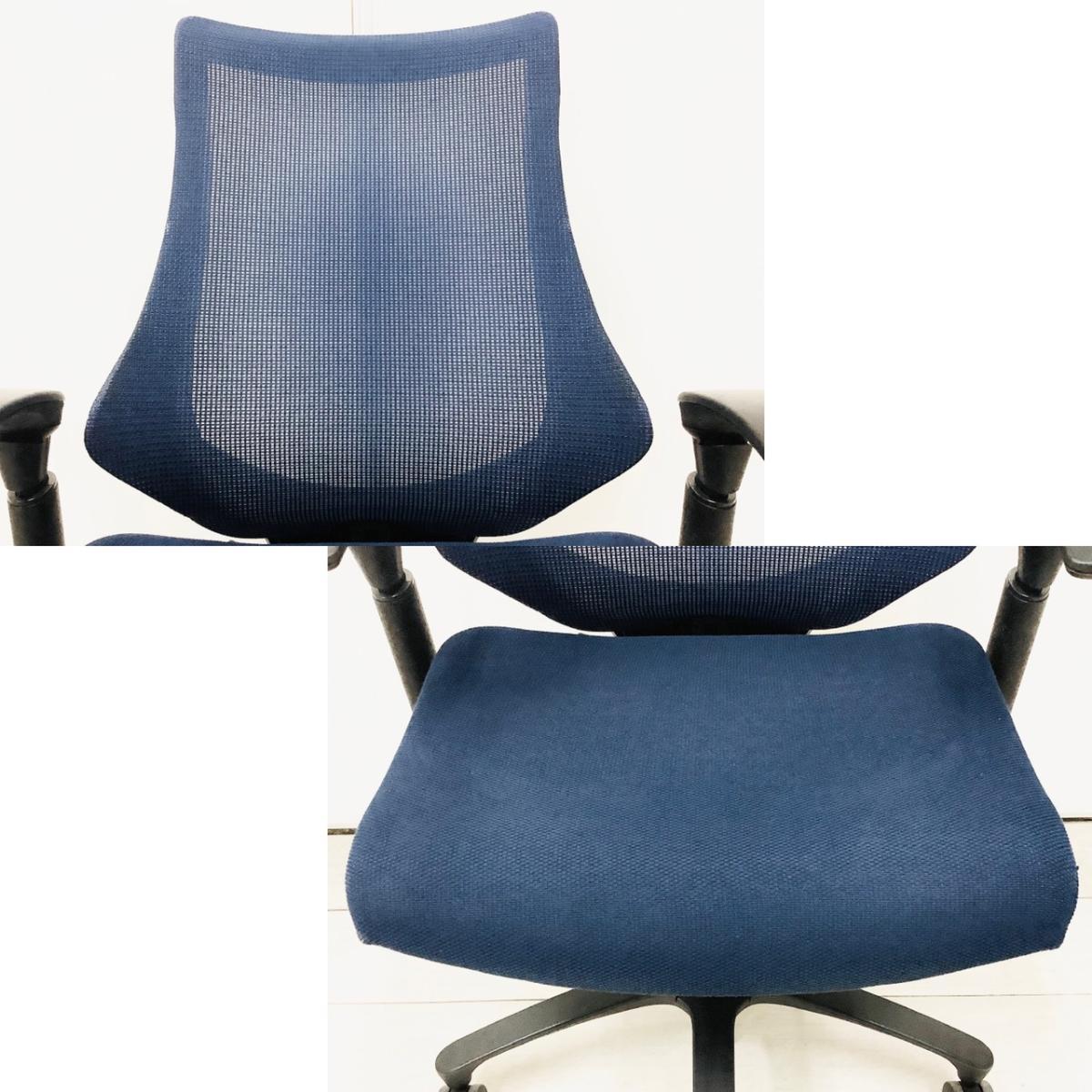 【T1】【T12】【商品入替のため、残り5脚限り】イトーキ製 エフ(f) ネイビーブルー ブラックフレーム 背もたれメッシュ 肘付き ハイバック アジャスタブル※可動肘 姿勢の変化にフレキシブルに対応! 肘付きハイバックチェア!!