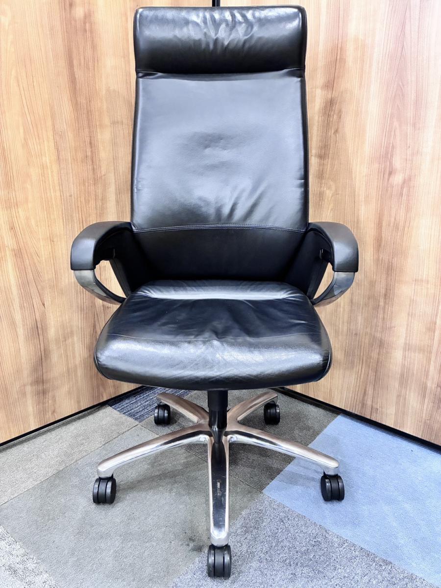 【訳アリ品】【上質でハイグレードなデザイン!】■コクヨ製 フィロソフィーチェア エクストラハイバック 肘付 ブラック ■すべての機能を手元で調整可能!本革張り高級チェア!ヘッドレスト付!【KOKUYO Philosophy】- 名古屋本店