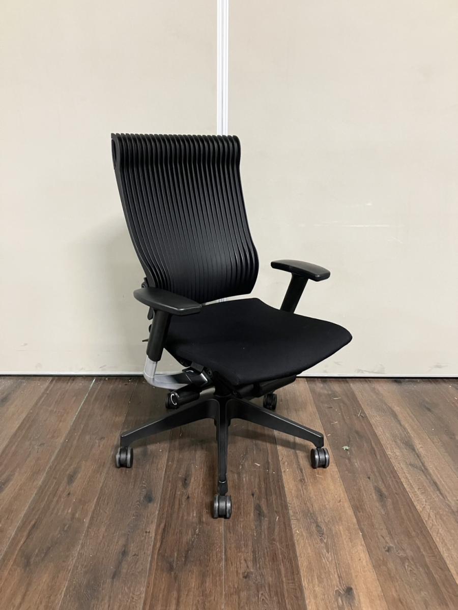【独創的なフォルムでデザインと快適性の融合を実現!】■イトーキ(ITOKI)製 スピーナ(Spina)チェア 肘付ハイバック ■ブラック ■エラストマータイプ ■可動肘