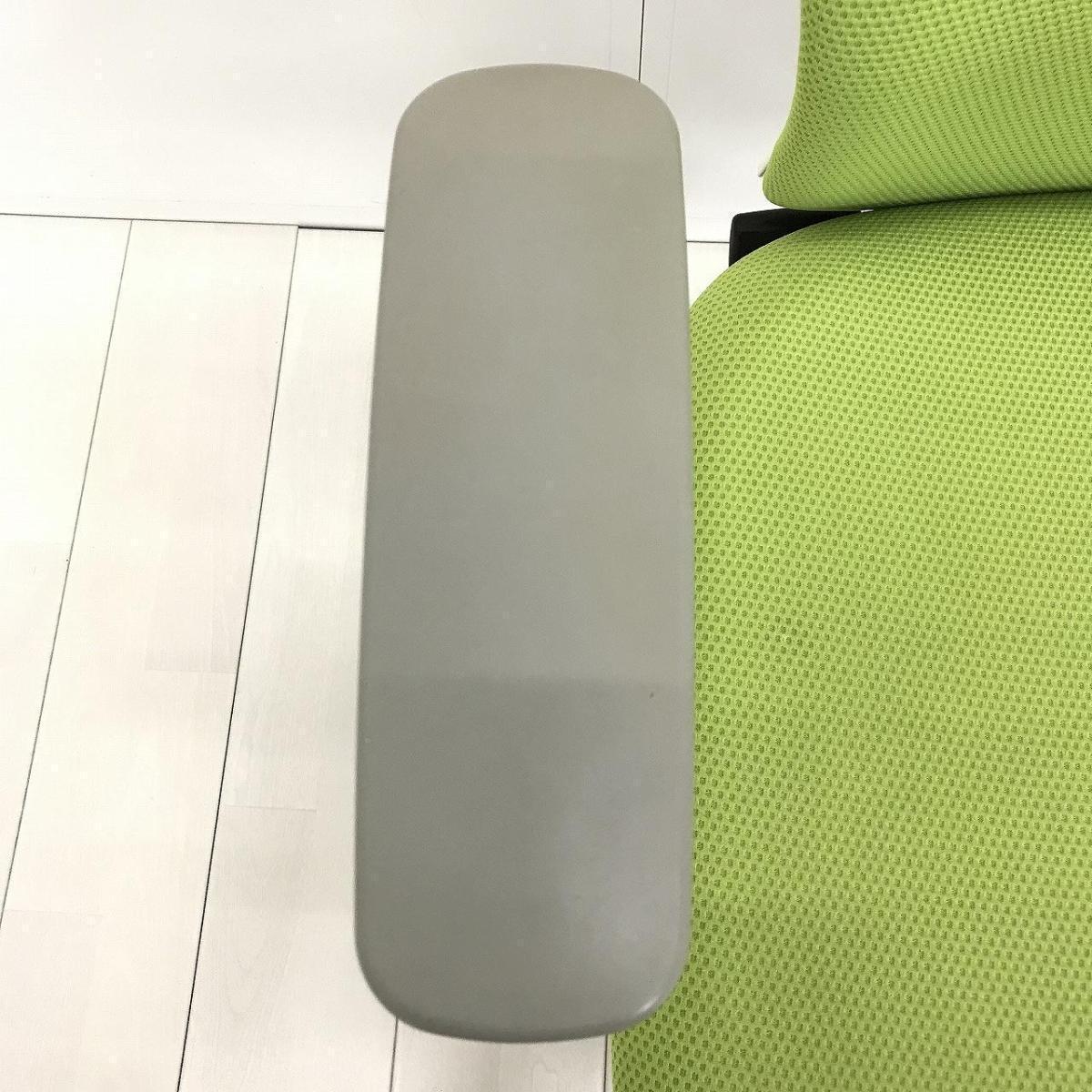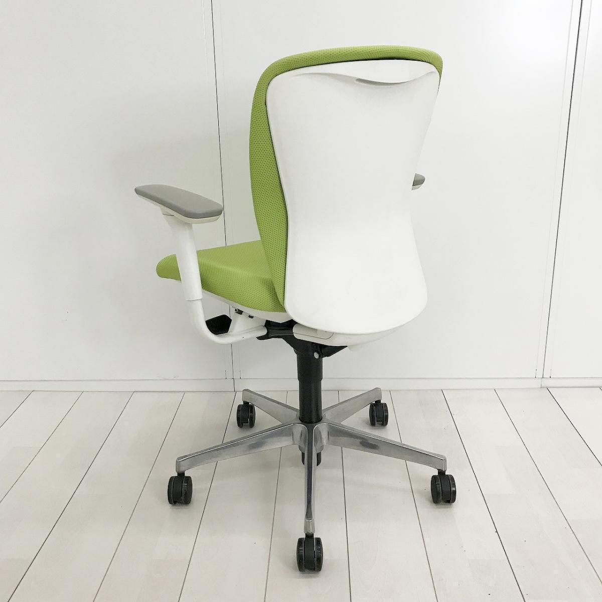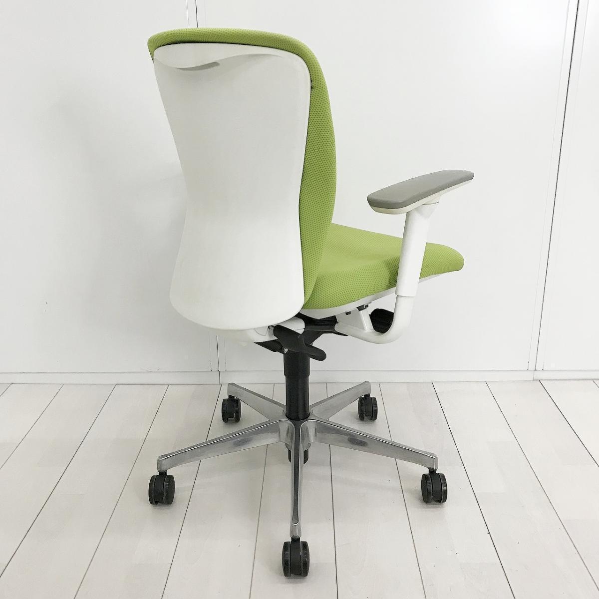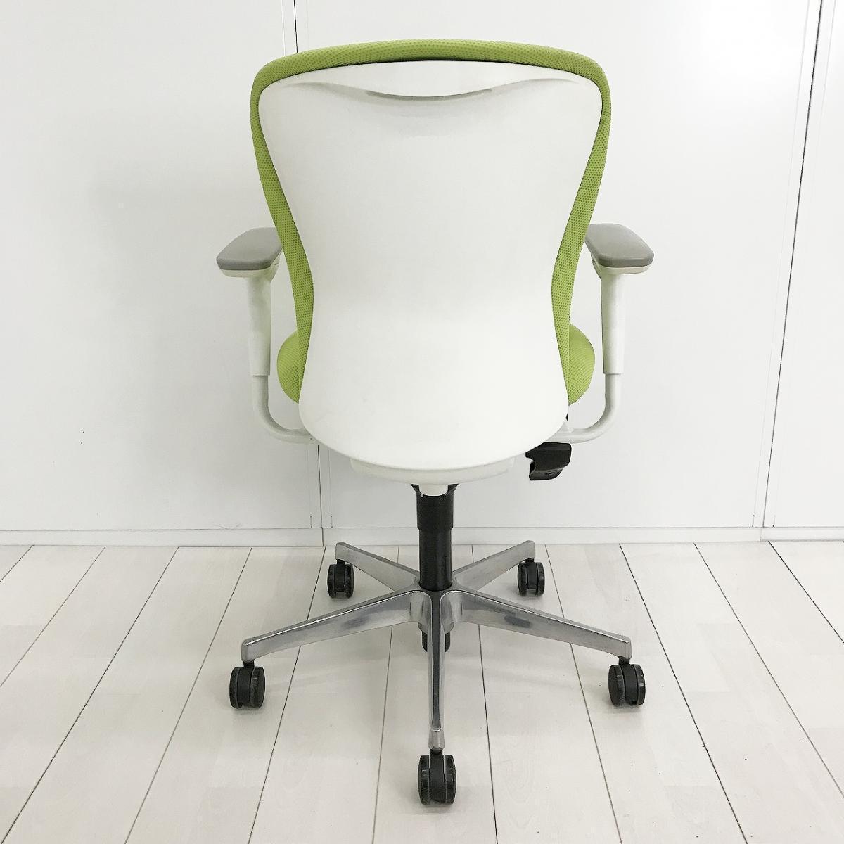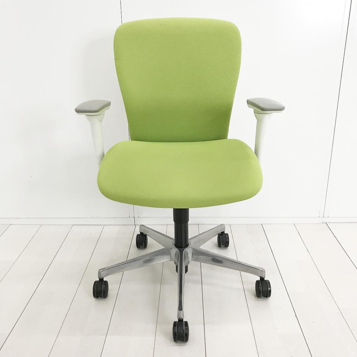 ■オカムラ(okamura)製 スラート(sulato)チェア 肘付 ローバック クッションタイプ ■可動肘・ハンガー付き ■ライムグリーン×ホワイトシェル