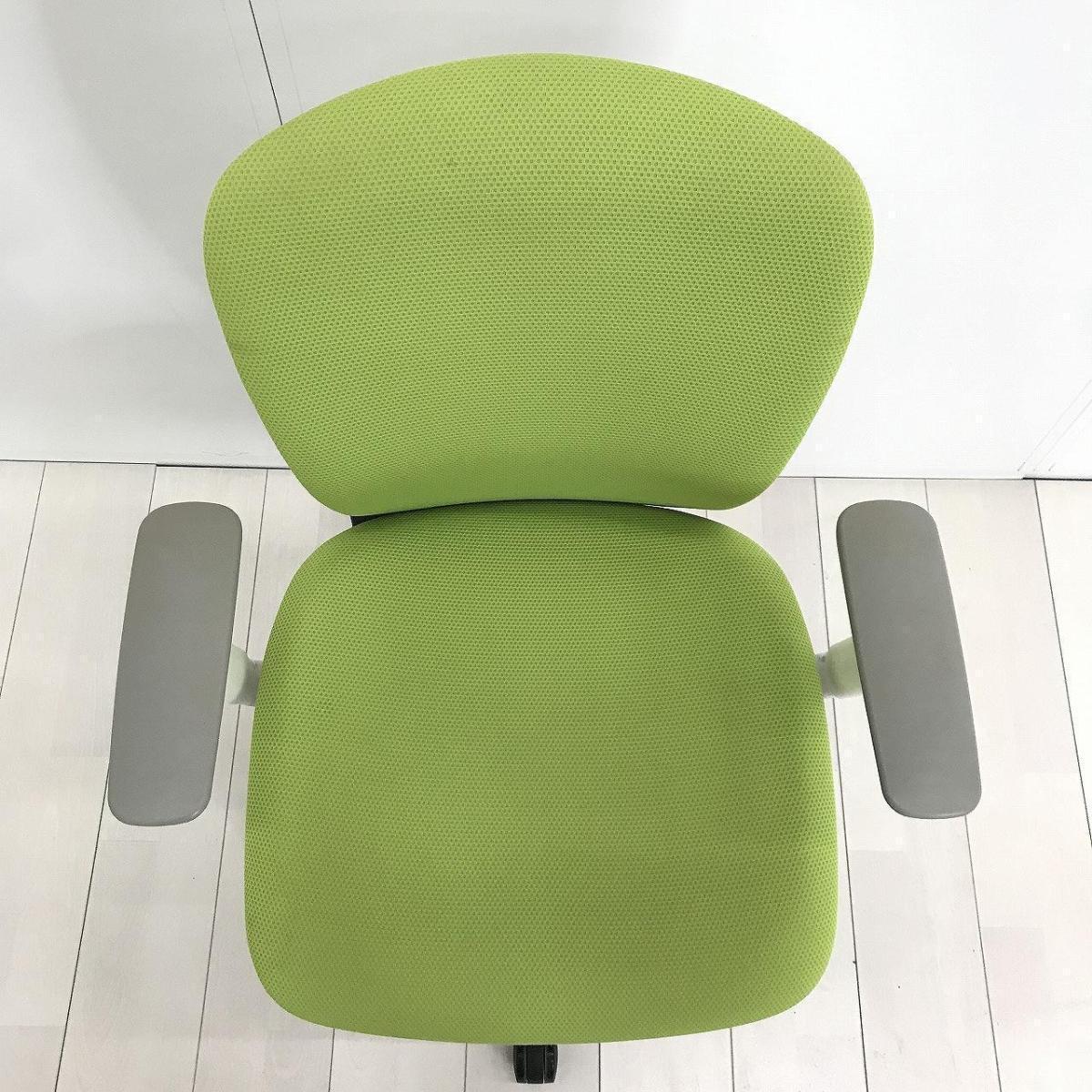 【シンプルなデザインと厚みのあるクッションが大人気!機能充実のワーキングチェア】■オカムラ(okamura)製 スラート(sulato)シリーズ rローバックバック肘あり ■ライムグリーン