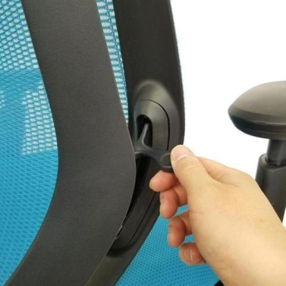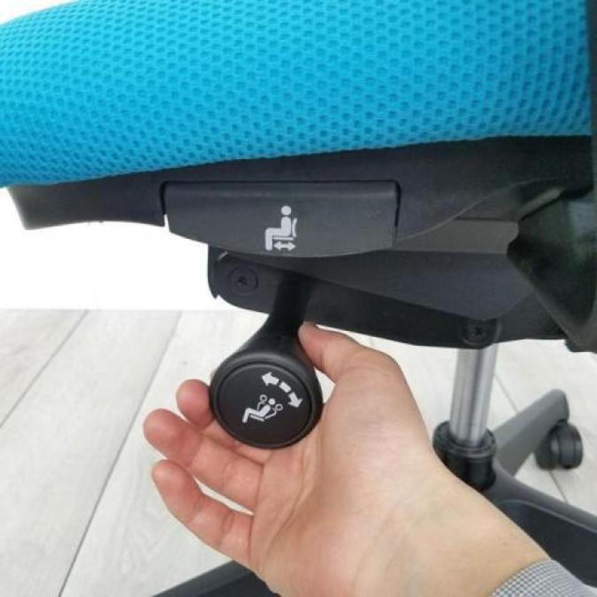 - 座面右下のダイヤル操作で、リクライニングの強弱調整が行えます。これまでのダイヤル式よりも、少ない回転数で、最弱?最強の調整が可能です。