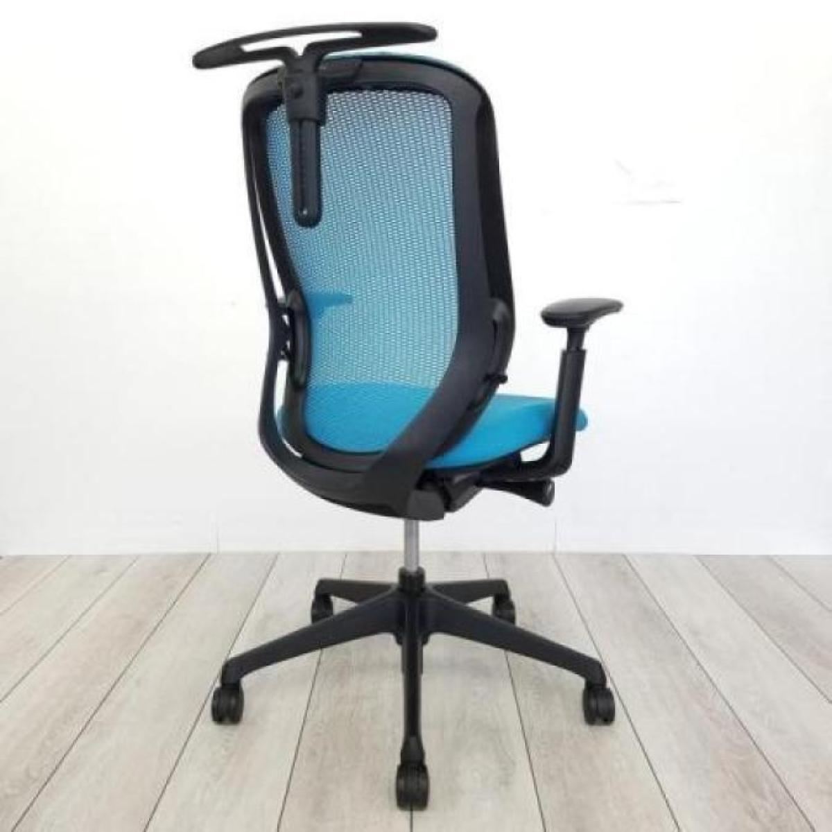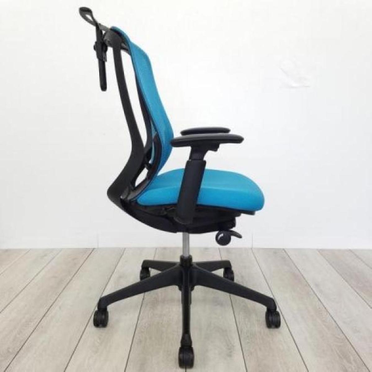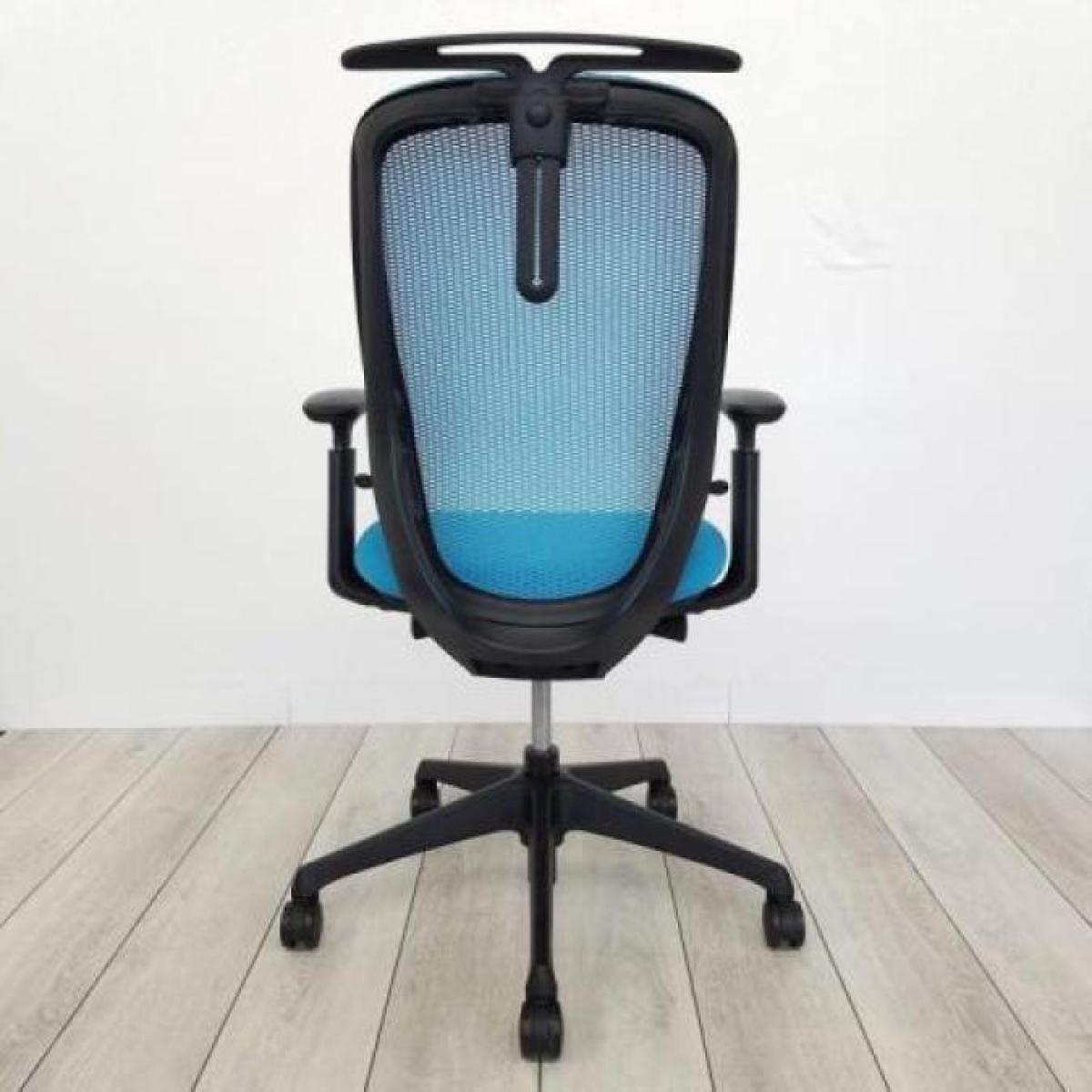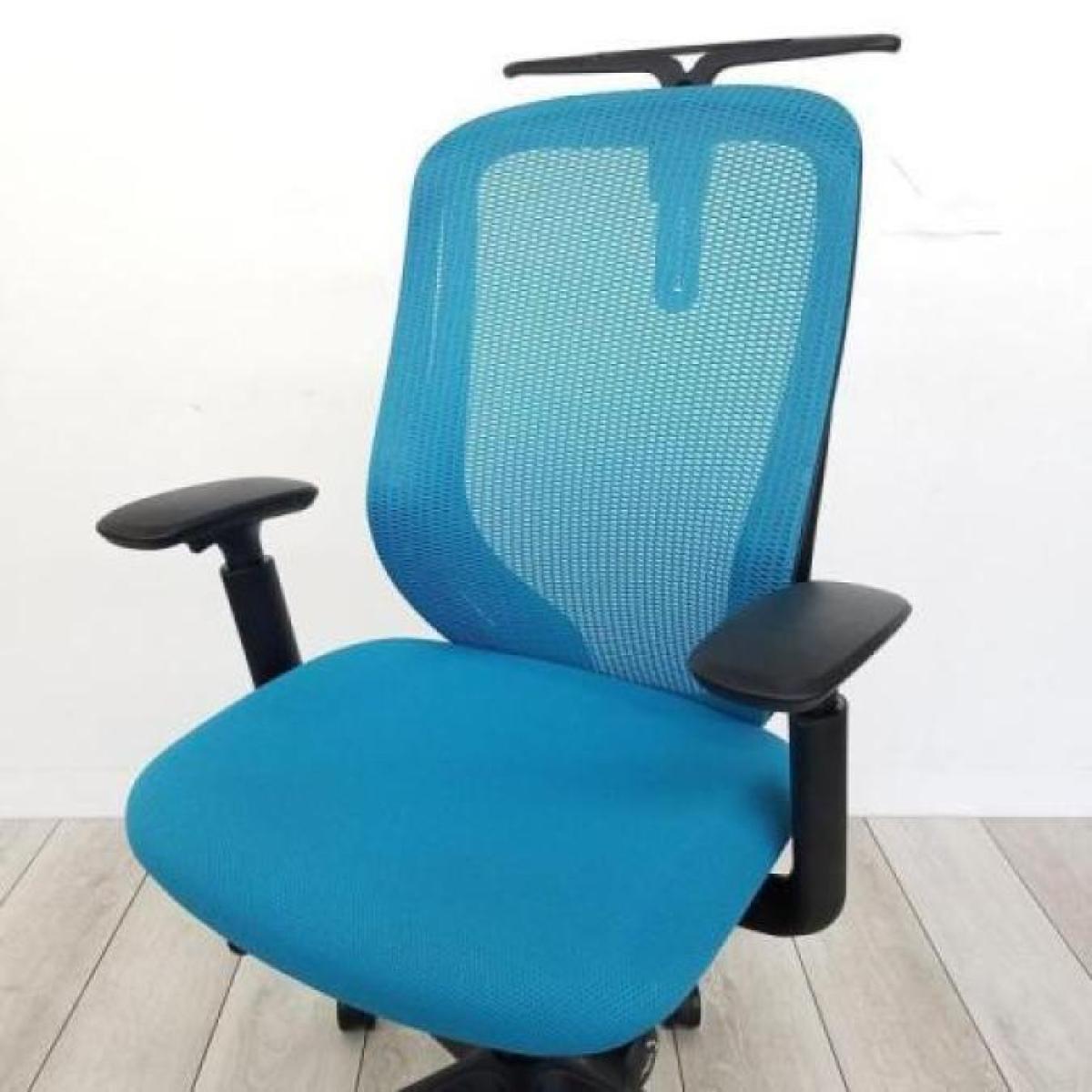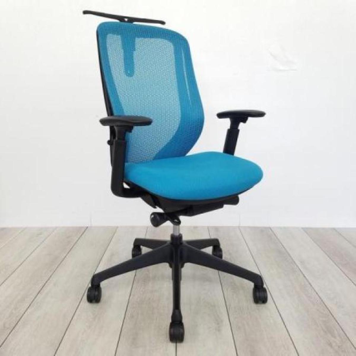 【快適とスタイルを両立!長時間作業に最適な高機能!】大人気チェアがヘッドレスト付きで入荷! ■オカムラ/シルフィーメッシュ/ブルー 固定アームレスト付