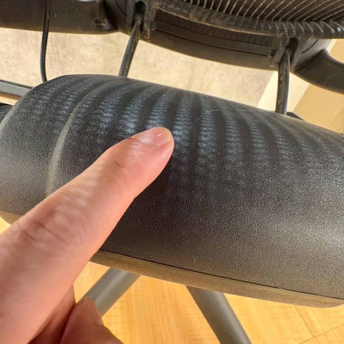 - 目立つ箇所あり傷・破れ・ほつれ・へたり・しわが多数または深い傷・破れ・ほつれ・へたり・しわが一部ある。※座面・背もたれ、シェル、脚部等にある。