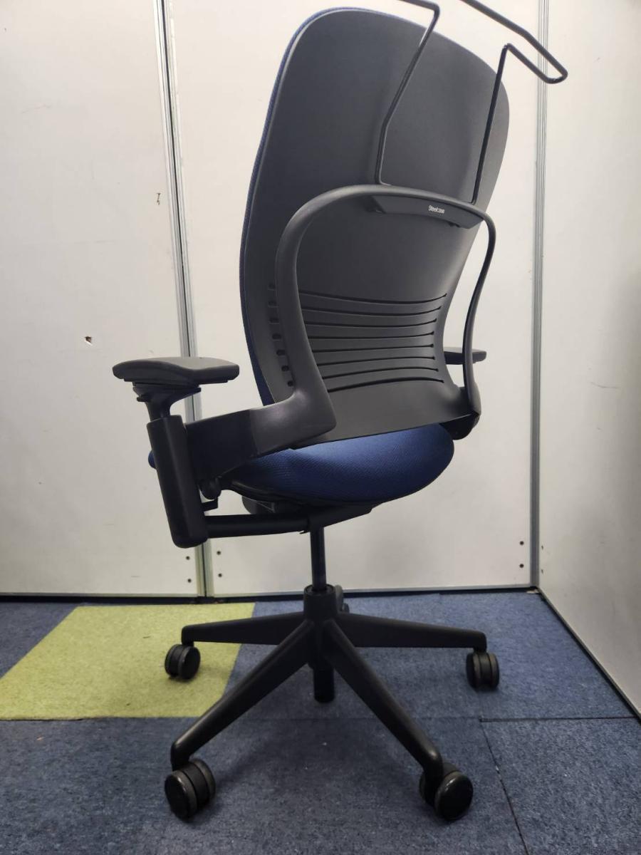 【訳アリ品】【人間工学や医学など様々な観点から座りやすさを追求したチェア!自然なカーブをキープし脊髄への負荷を軽減!】■スチールケース(Steelcase)製 リープV2シリーズ ハイバック肘付 ■可動肘 ■ハンガー付 ■ブルー- 名古屋本店