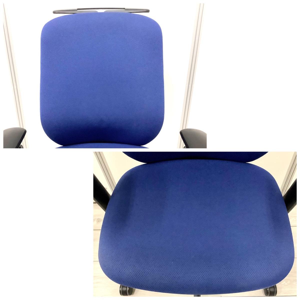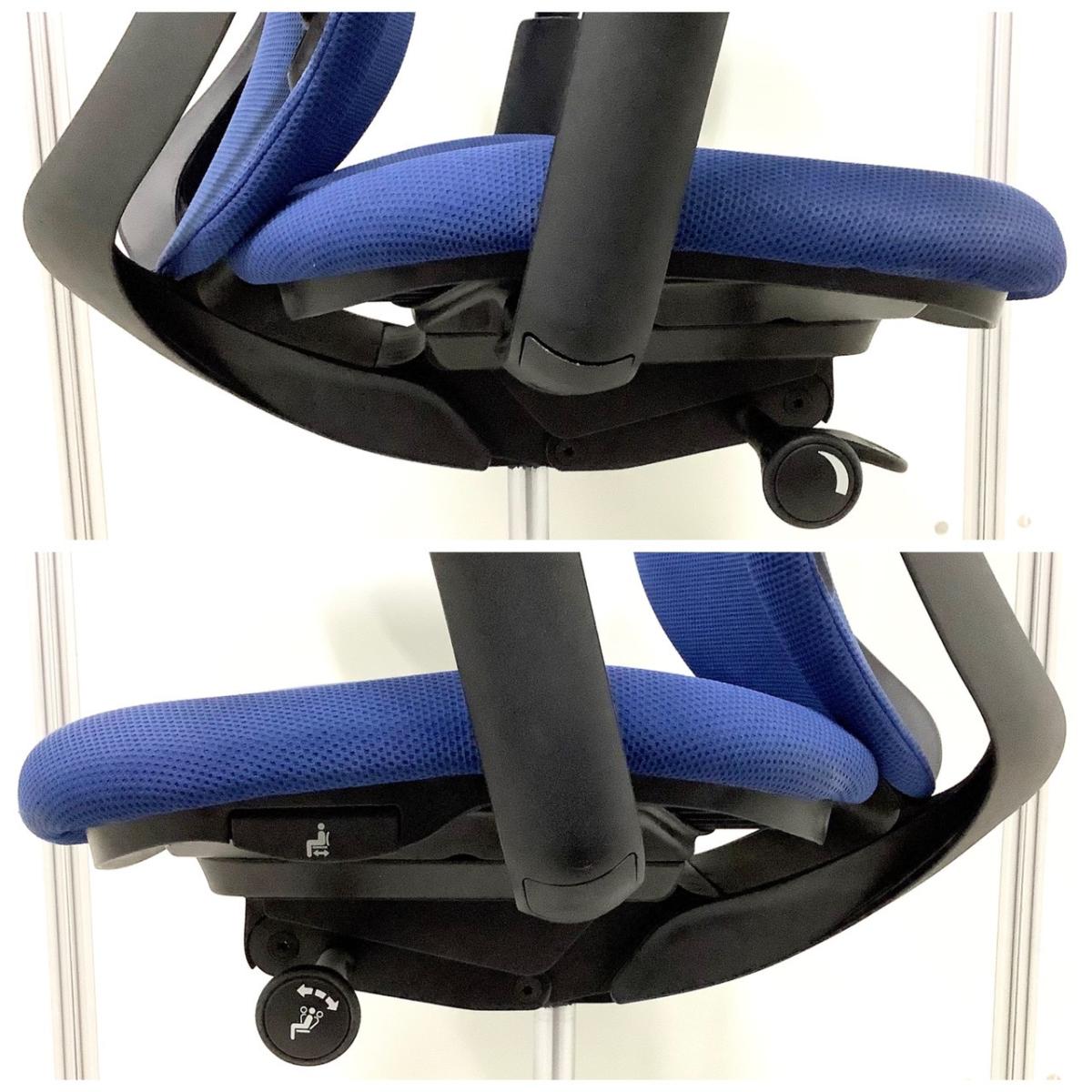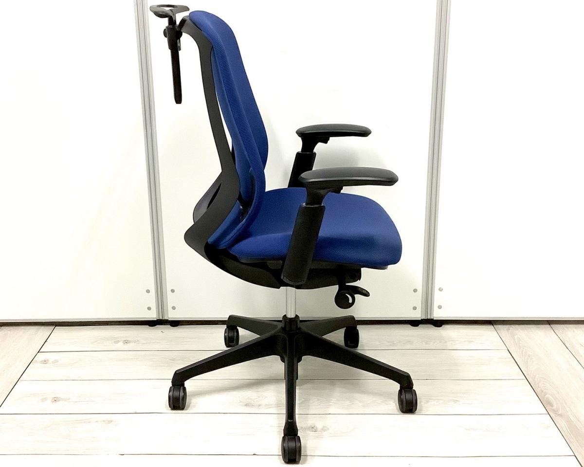 【いま売れています!背のカーブを変えられる新感覚のオフィスシーティング!】■オカムラ シルフィーチェア 可動肘付 ブルー ハンガー付 ※肘が擦れているためお安く!【A01056892】