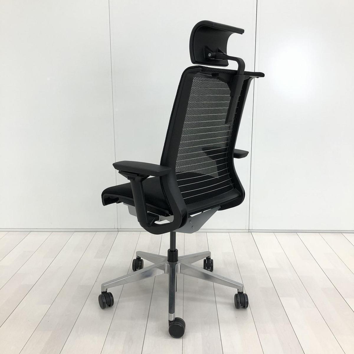 希少/レア/おすすめ スチールケース(Steelcase)製 シンク(think)チェア 肘付ハイバック 背面メッシュ ■可動肘・ヘッドレスト付き ■ブラック