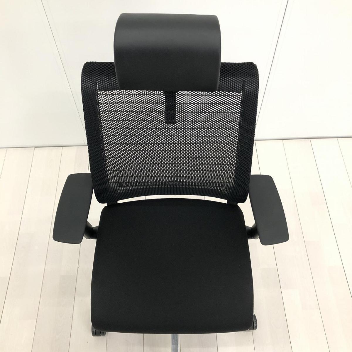 【限定1脚!】【あなたの座るを考える!ワイヤー構造が体を支える】■スチールケース(Steelcase)製 シンク(think)チェア 肘付ハイバック ■可動肘・ヘッドレスト付き ■ブラック【状態良好品!】- つくば店
