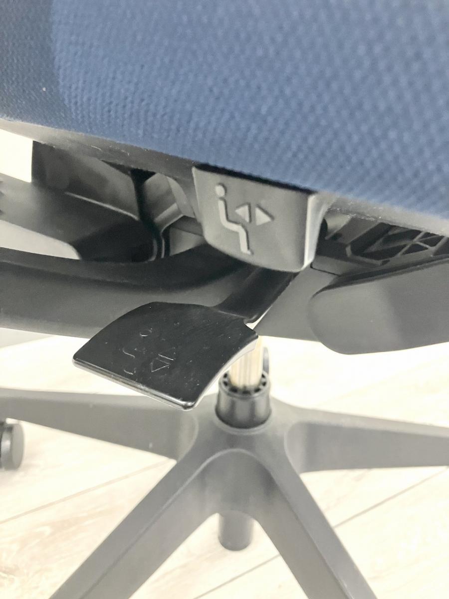 - 座面下のレバー操作により、座面を50mmのストローク(16.7mmピッチ)で好みの位置に調節できます。体格や作業姿勢に合わせたポジション設定が行えます。