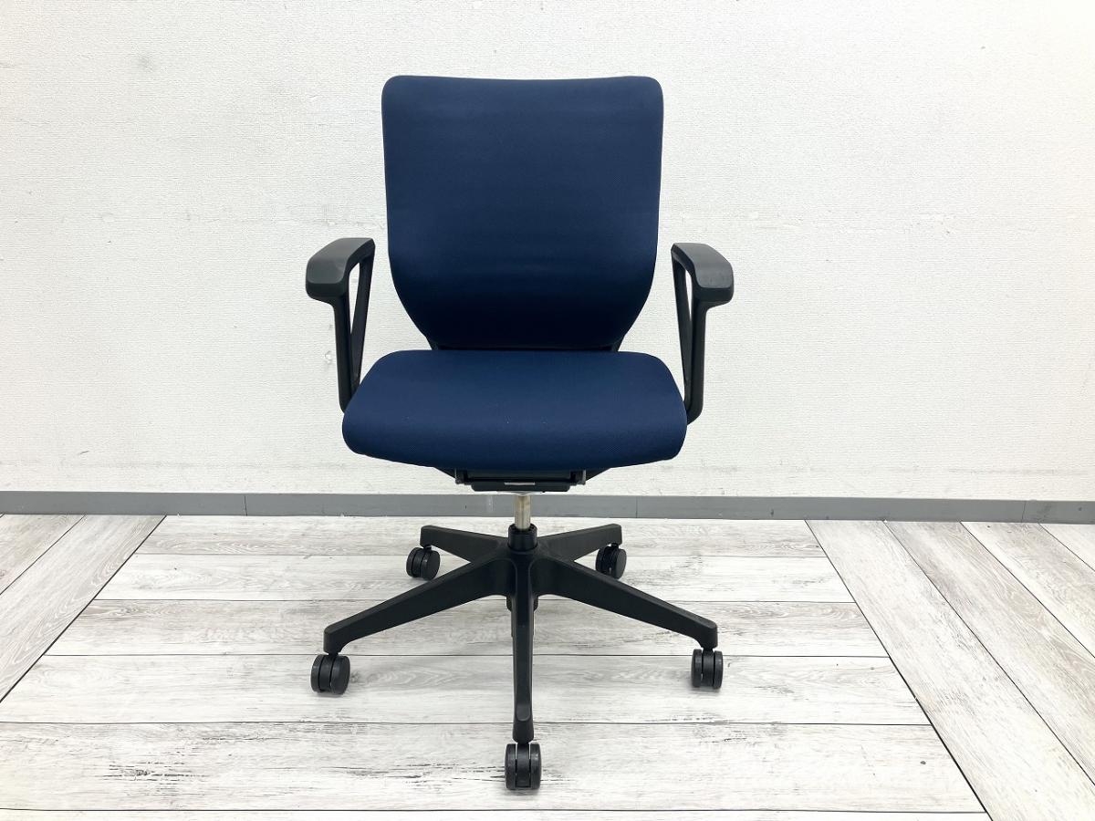 イトーキ エピオス ロ-バックモデル ループ肘(固定肘) クロスタイプ ネイビーブルー×ブラック フリーロッキング