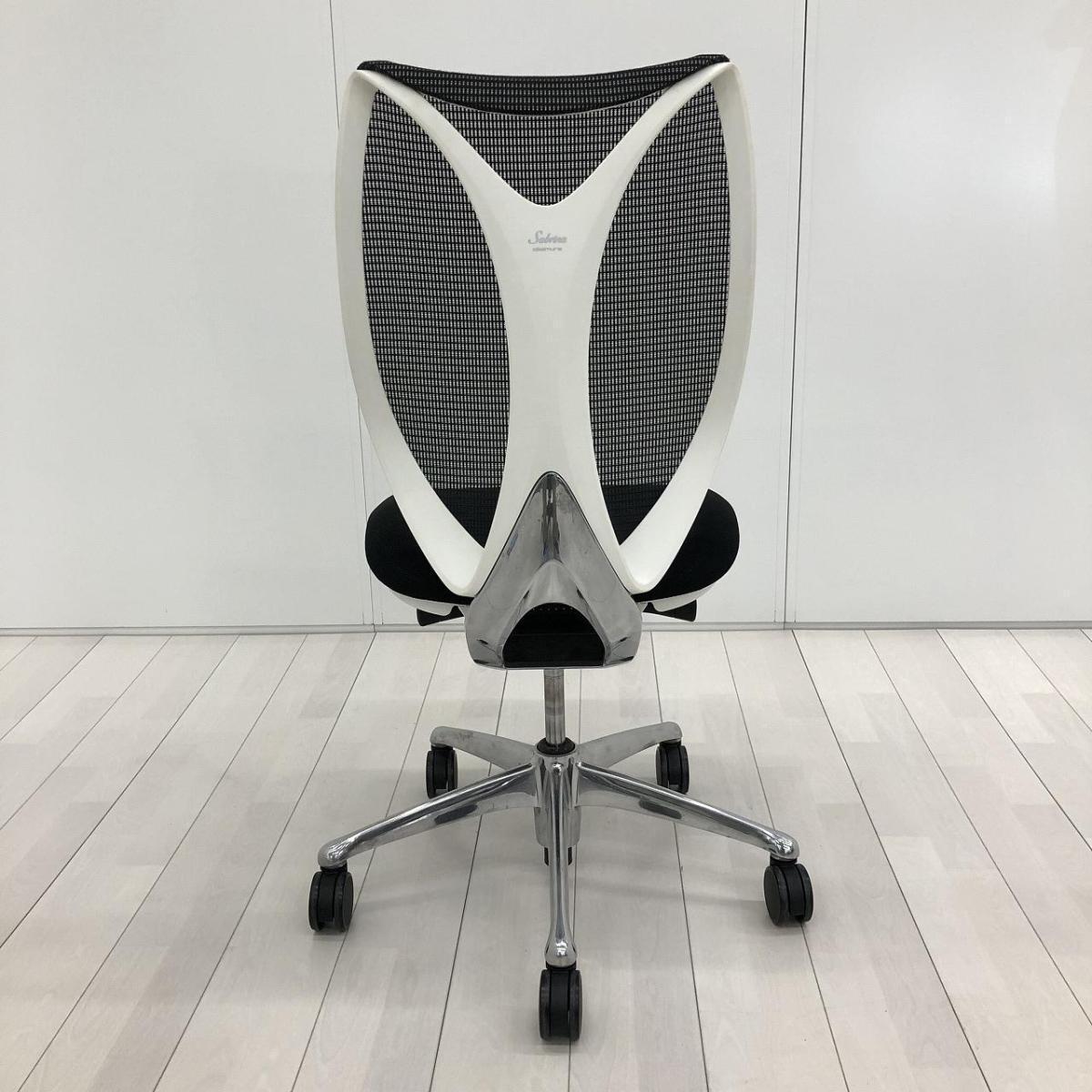 【流れるような美しいフォルムの最高級メッシュチェア!前傾チルト付きで作業効率アップ!】■オカムラ(okamura)製 サブリナシリーズ 肘無しハイバック ■背面メッシュ ■ブラック×ホワイトシェル オフィスバスターズ神戸三宮店