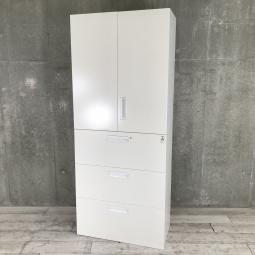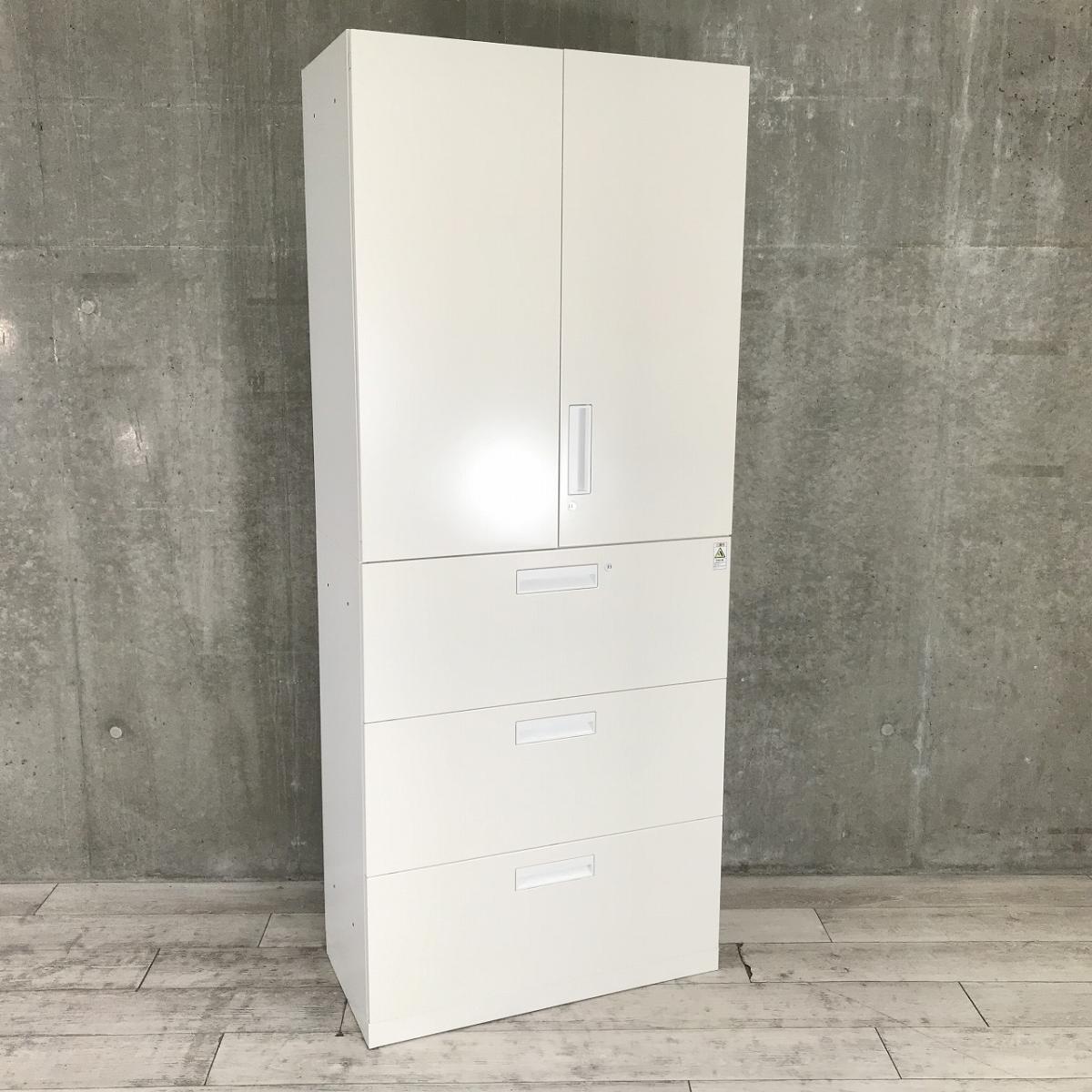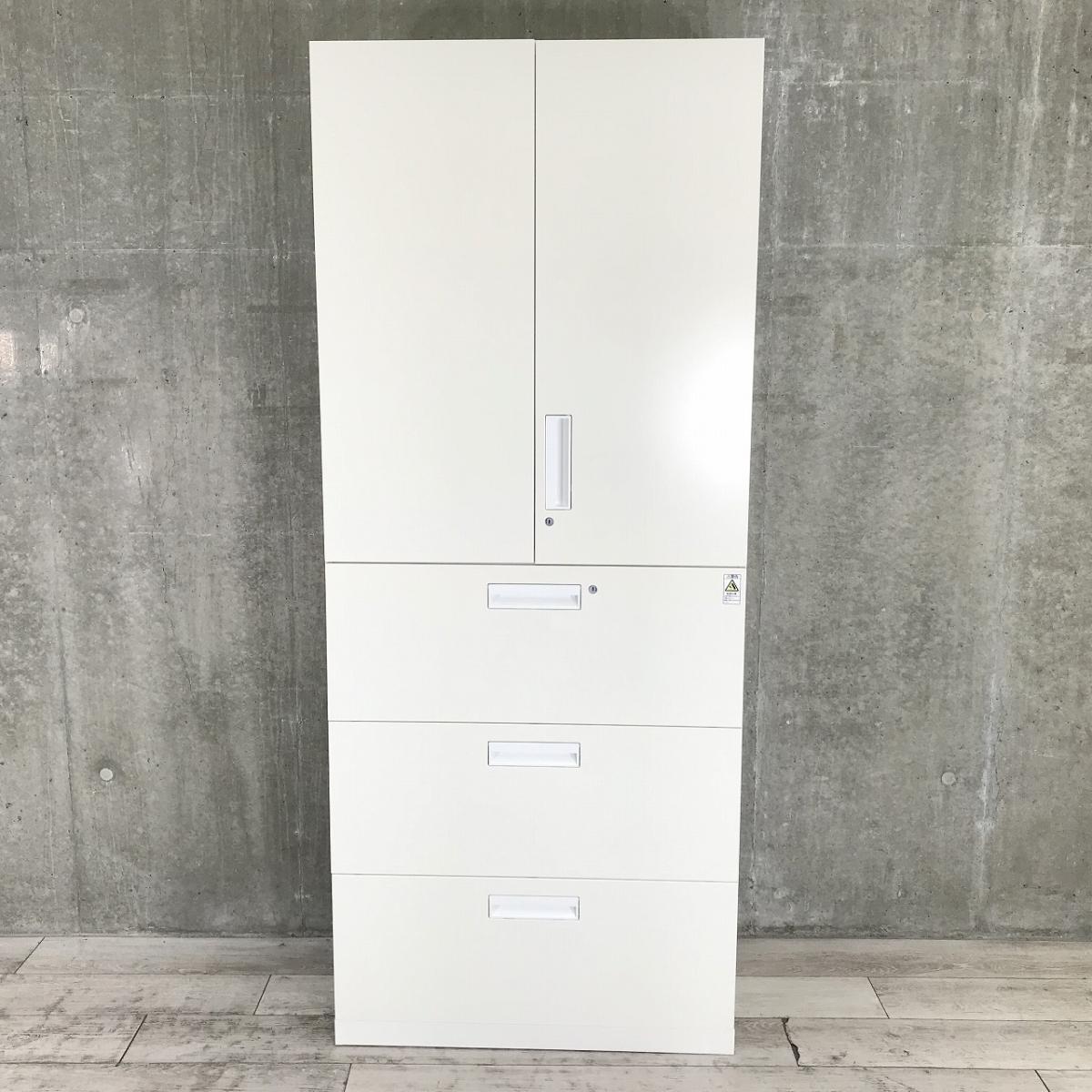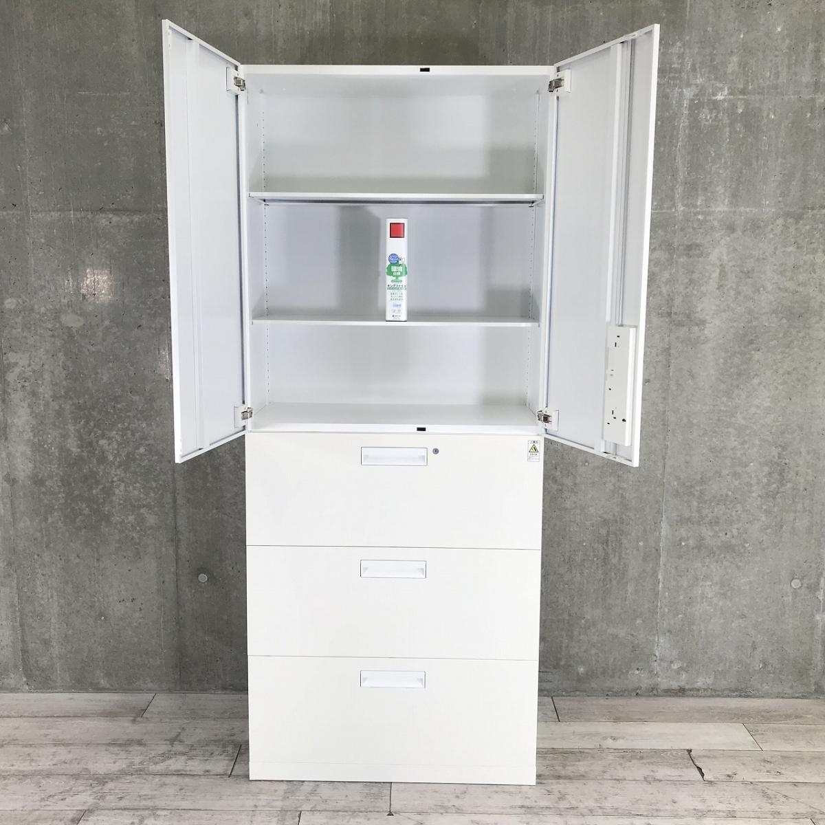 【収納量抜群の書庫セット!観音開き+引き出しタイプの人気の組み合わせ!】■コクヨ(KOKUYO)製 エディア(EDIA)シリーズ 両開き+3段ラテラル 書庫セット ハイキャビネット ■シリンダー錠 ■ホワイト