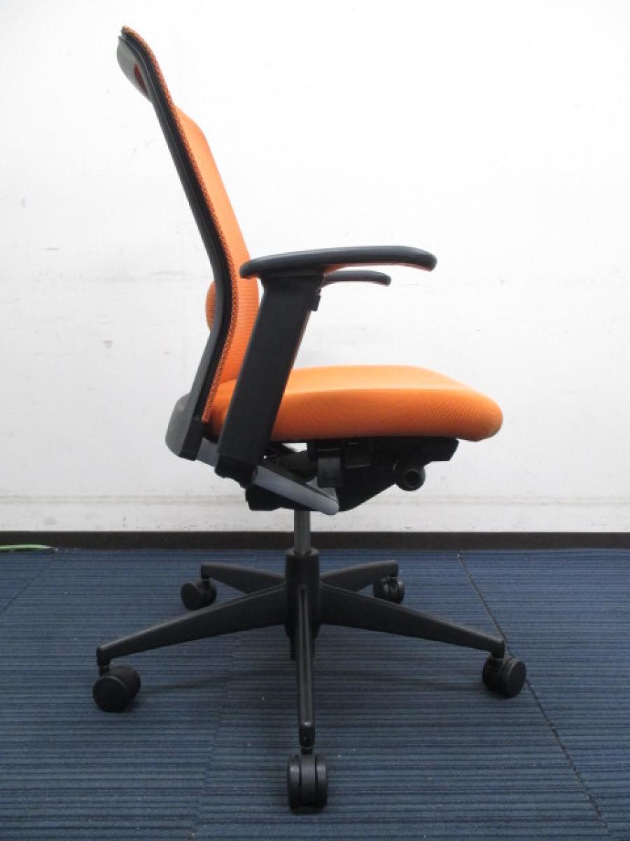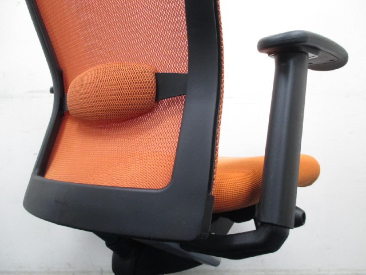 【上半身の動きにフィット・体を包み込むメッシュ張地! ランバーサポート付きのチェアをお手頃価格でご案内!】■コクヨ(KOKUYO)製 フォスターエトス (ETHOS) 肘付き ハイバック ■肘付ハイバックチェア ■背面メッシュ ■オレンジ×ブラックフレーム- つくば店