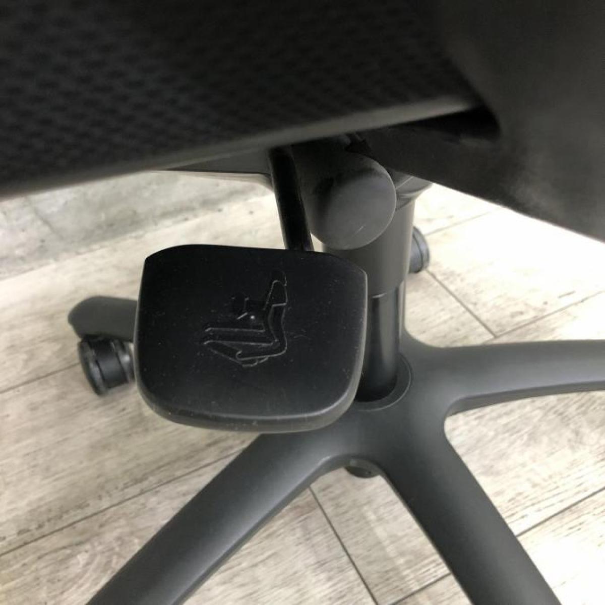 もう一つは、オカムラ社独自の""異硬度クッション""が座面に採用されていることです。これは座面が位置により異なる硬さのウレタンでできており、前方は腿裏を圧迫しないようソフトに、後方はしっかりと体重を支えるために少し硬めに作られています。クッション性とホールド感の両立により、長時間の作業での疲れを軽減してくれます。"