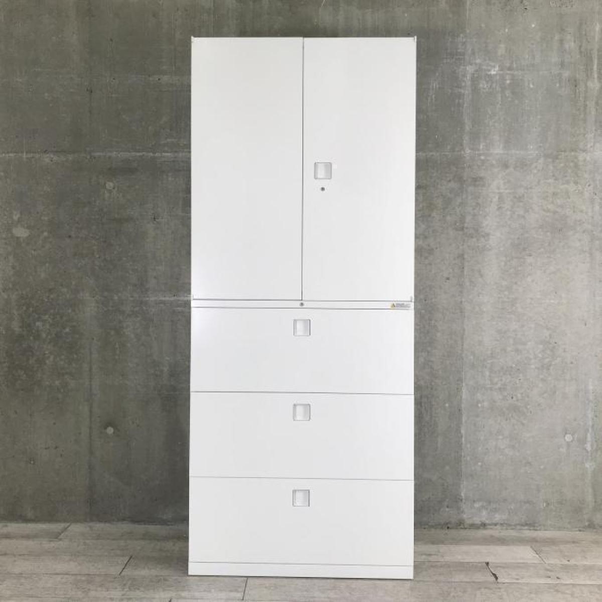 【お問合せ多数の商品ですのでお早めに!】■オカムラ製 レクトラインシリーズ 上下書庫セット 両開き+3段ラテラル ホワイト
