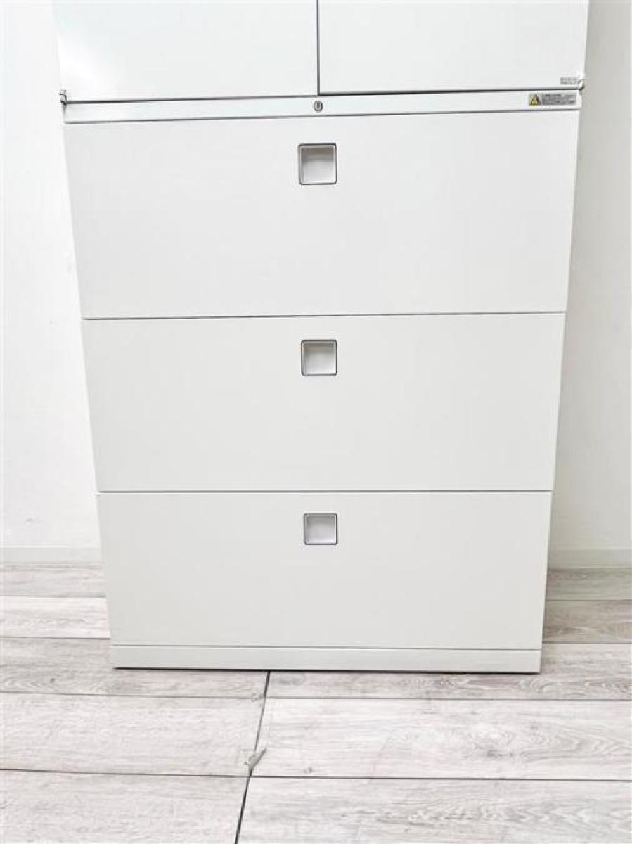 ■オフィス書類をスッキリ整理! ■革新的な取っ手を採用したオフィスの味方! ■オカムラ(okamura)製 レクトライン(Rectline) 2段両開き戸+3段ラテラル書庫セット■色:ホワイト