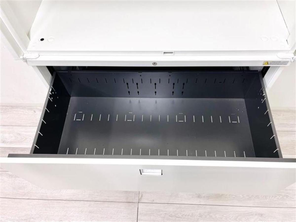 - 一部不具合ありそ引出の開閉不可、施錠不可、棚板無しといったの書庫の本来の効用を果たすための機能以外の一部が使用不可(例、扉、引出の開閉がしづらいなどがある。 )
