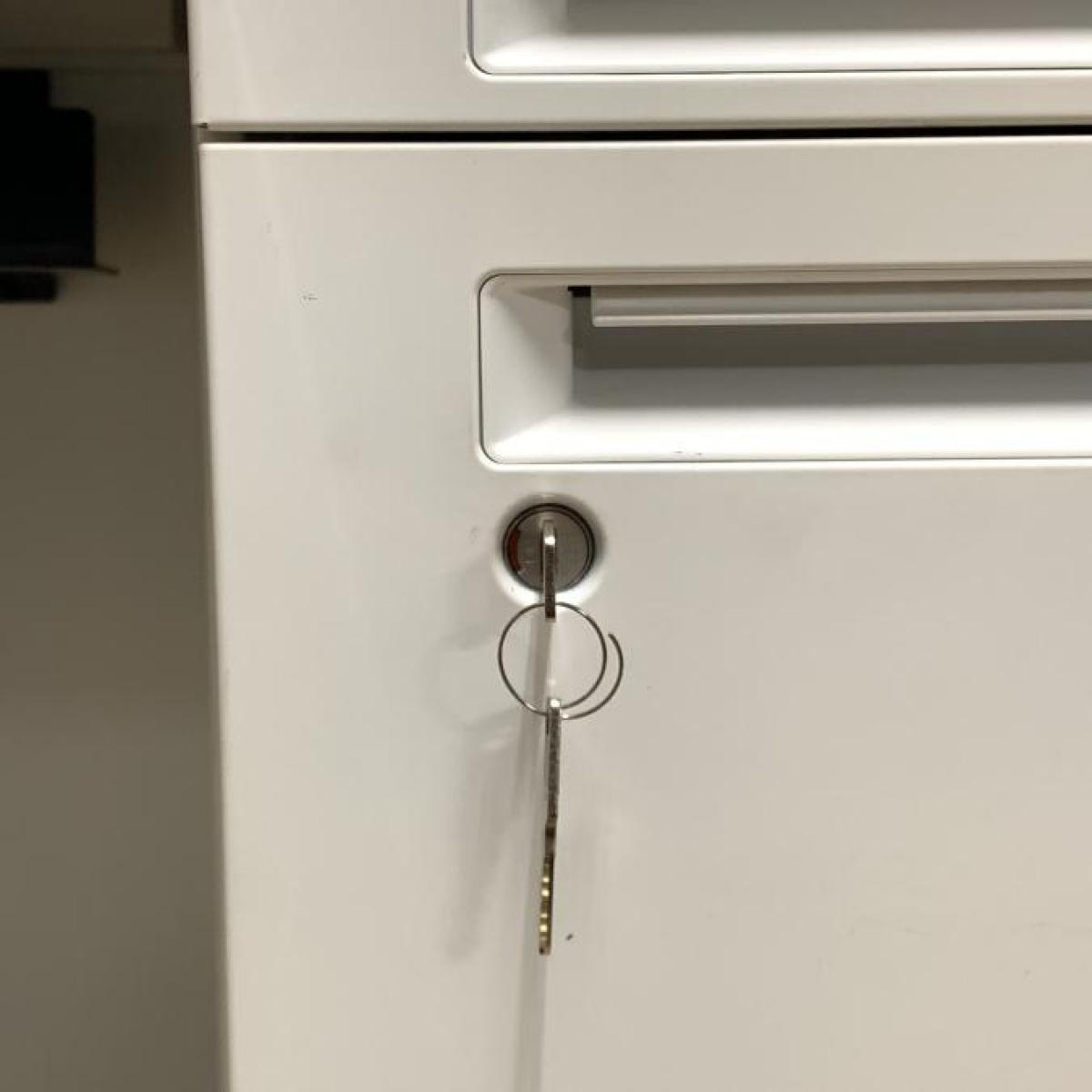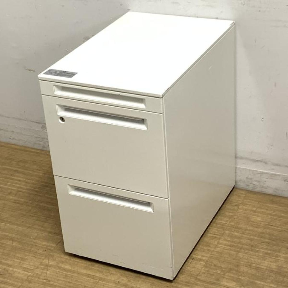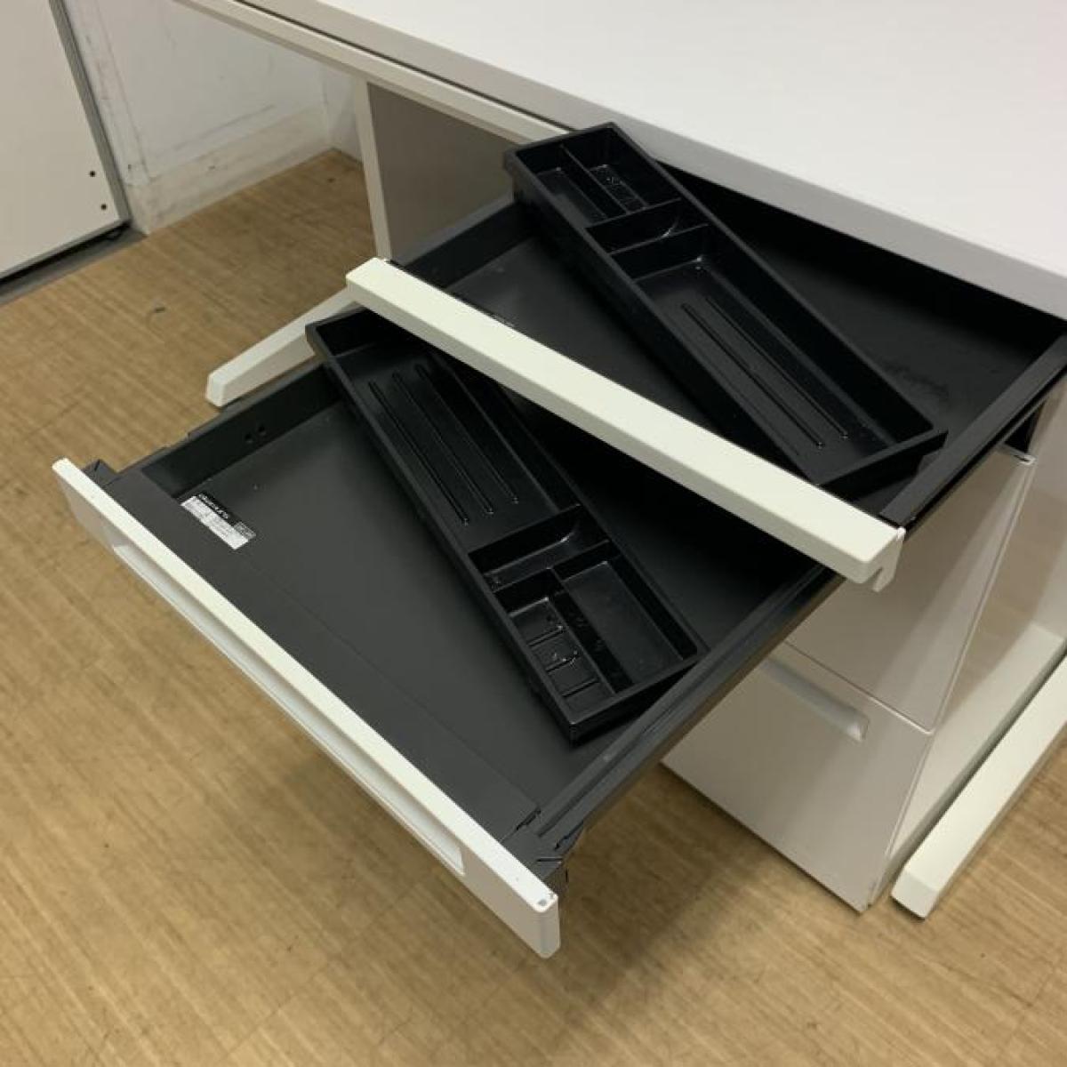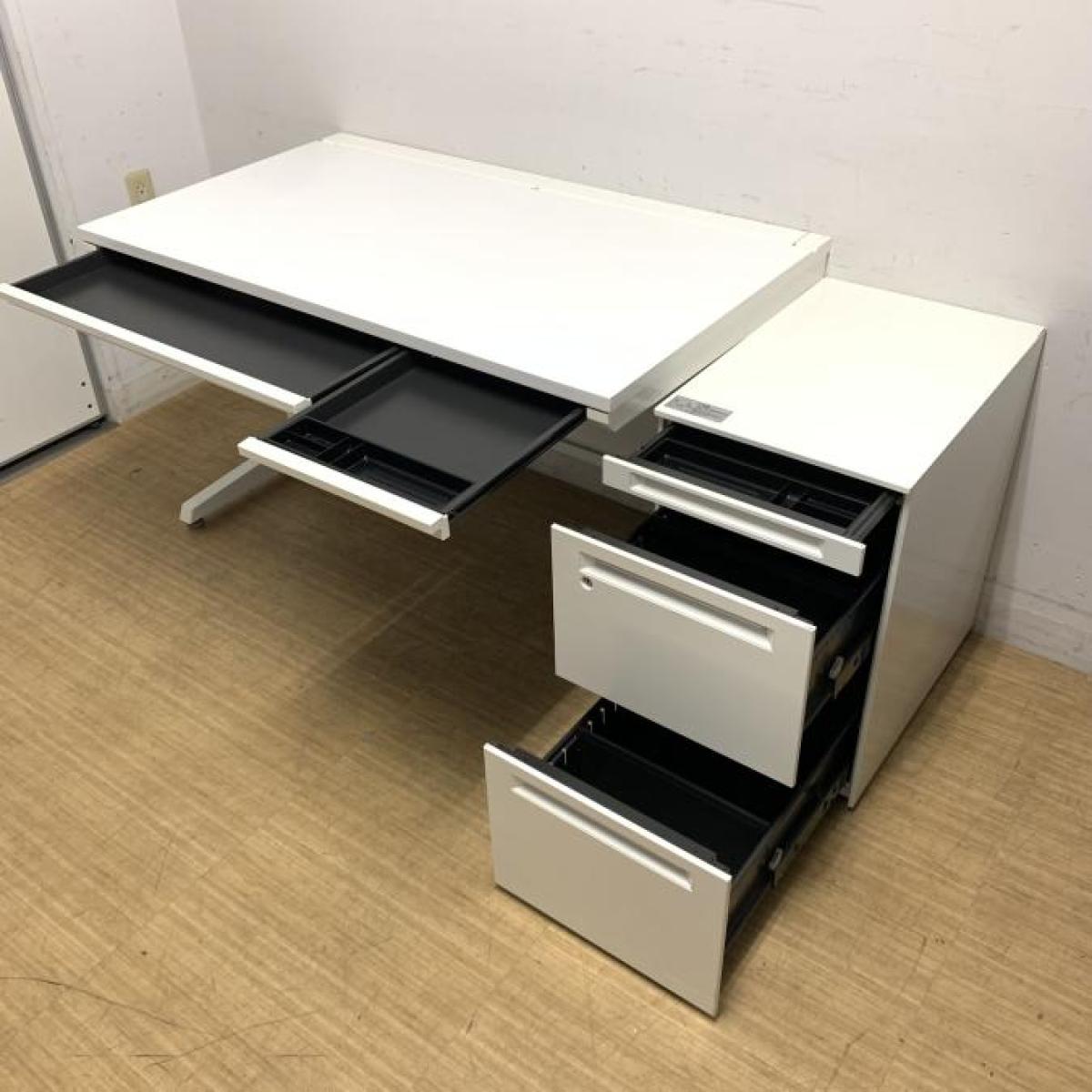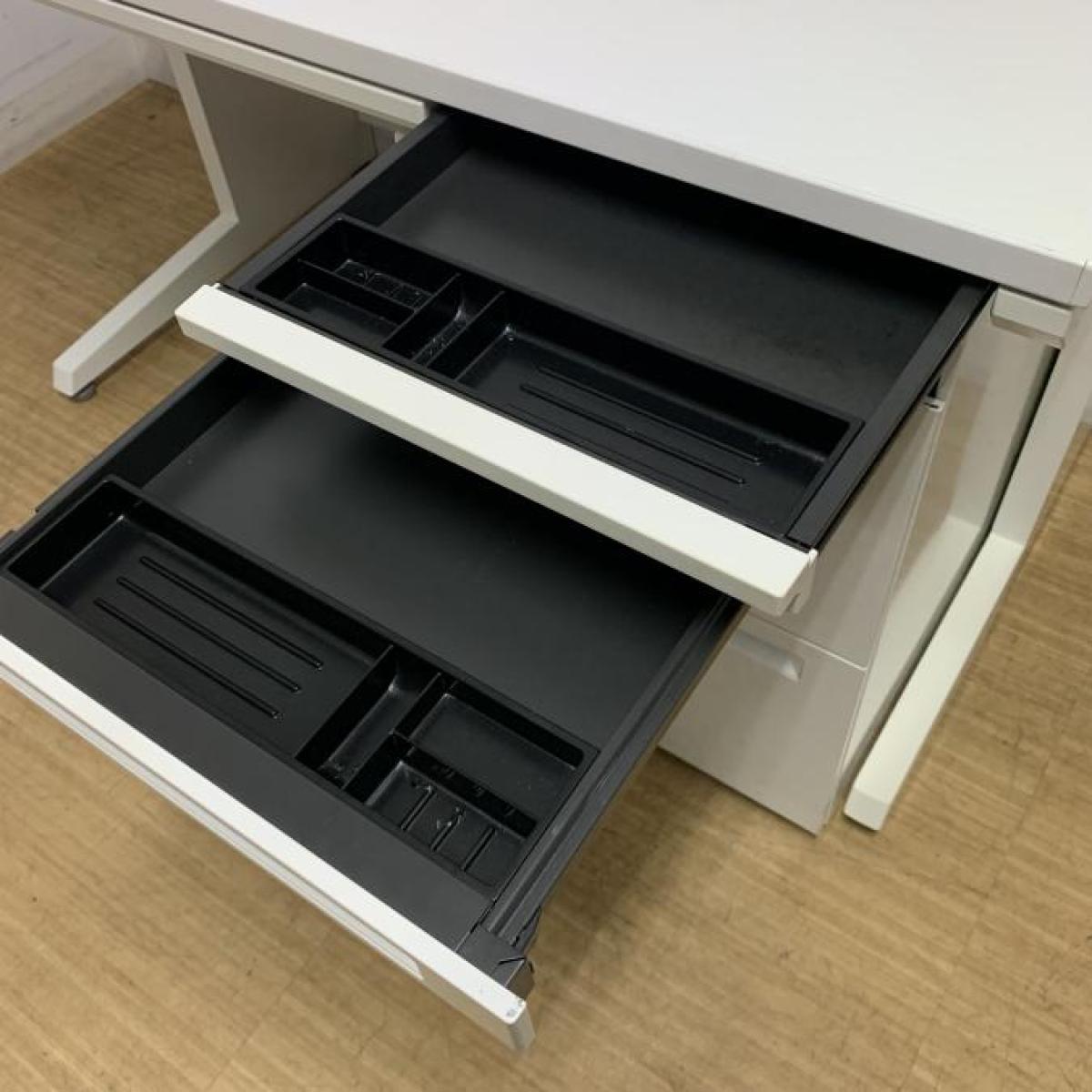 オカムラ アドバンス 平机+3段ワゴンセット(疑似で片袖机として利用可能) ホワイト シリンダー錠 鍵付き W1200の定番サイズ- 春日部・越谷店