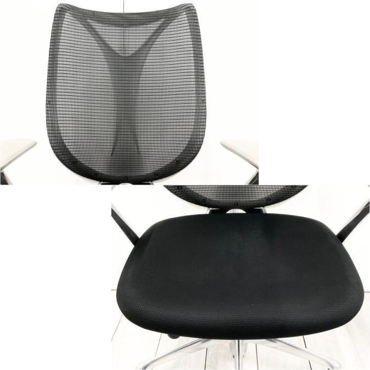 大人気!オカムラ製のメッシュチェアが入荷! 座面・背面が広めでしっかりしており、前傾機能が付いた高級チェアです! ■オカムラ/サブリナ/ブラック デザインアーム付 ホワイトボディ- 立川・八王子店