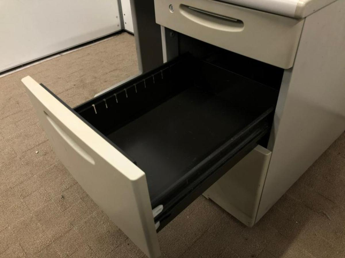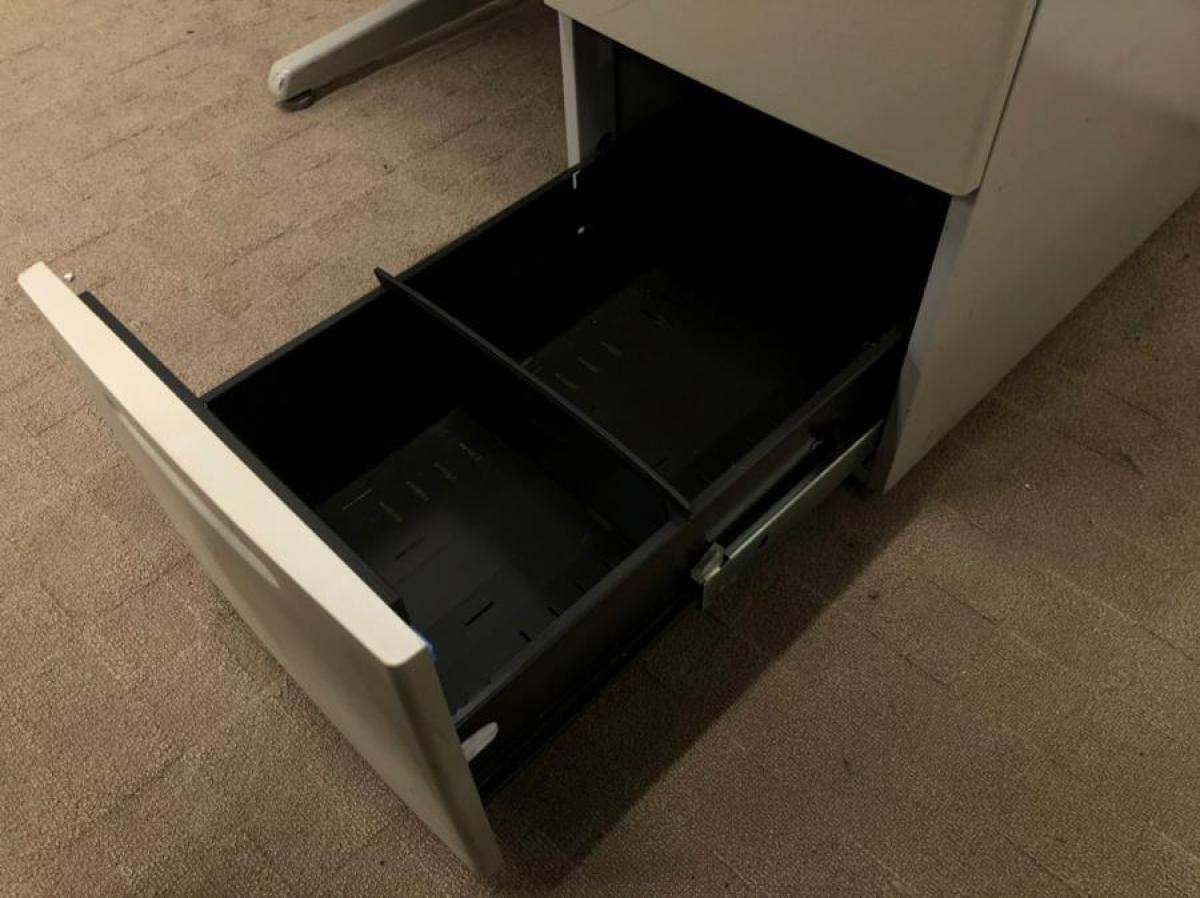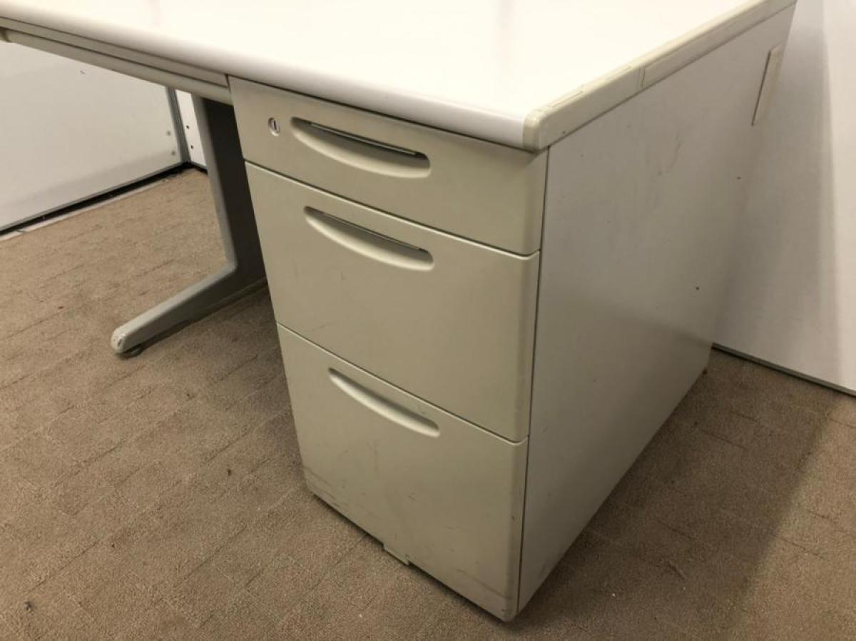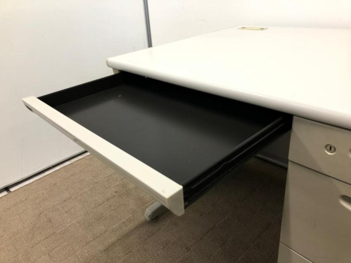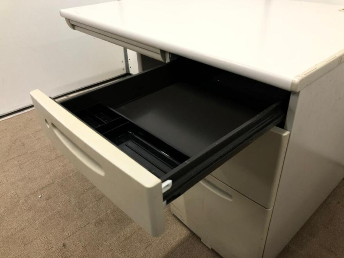 - 袖机のワゴンは、最下段がロング引出しになっており、従来より収納力120%アップ。