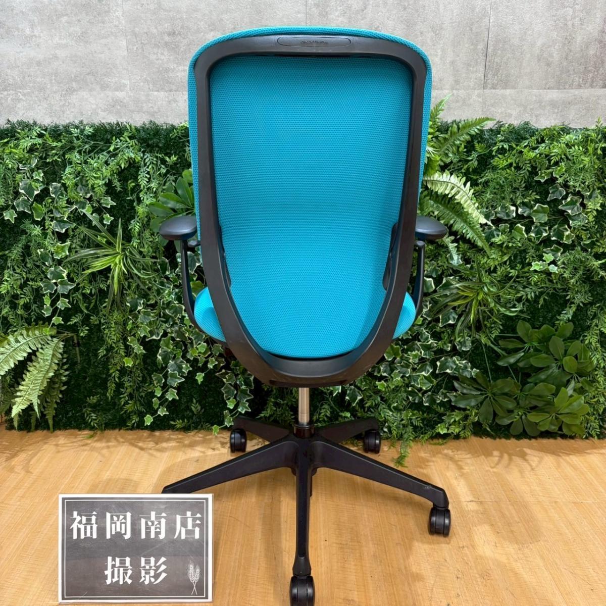 【新感覚のオフィスシーティング!】■オカムラ シルフィチェア 肘付 ブルーグリーン ※擦れ・ホツレ・破れ・色落ちがあるためお安く!【在庫入替セール品!】