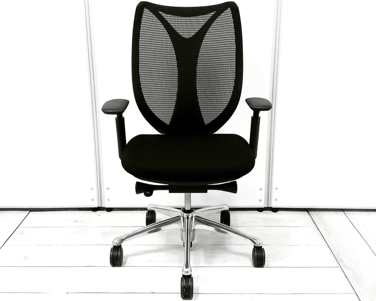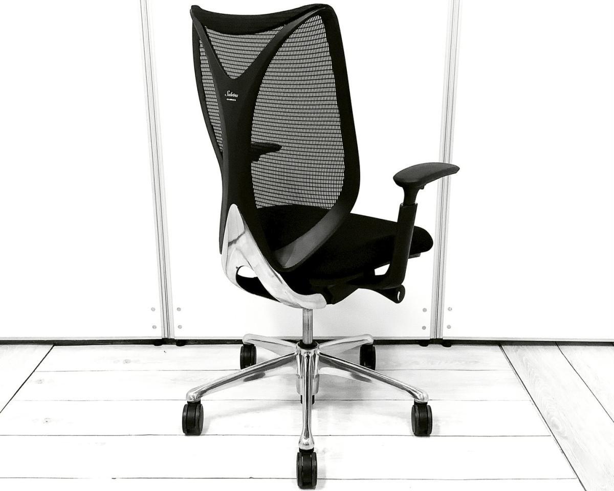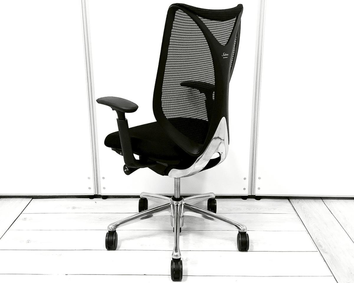 【居住性究極のスマートオペレーションモデル! 安定感のある座り心地で大好評の最高級メッシュチェア!】■オカムラ(okamura)製 Sabrina(サブリナ) エクストラハイバック ■ブラック ■可動肘 ■ヘッドレスト付き ■スマートオペレーションモデル