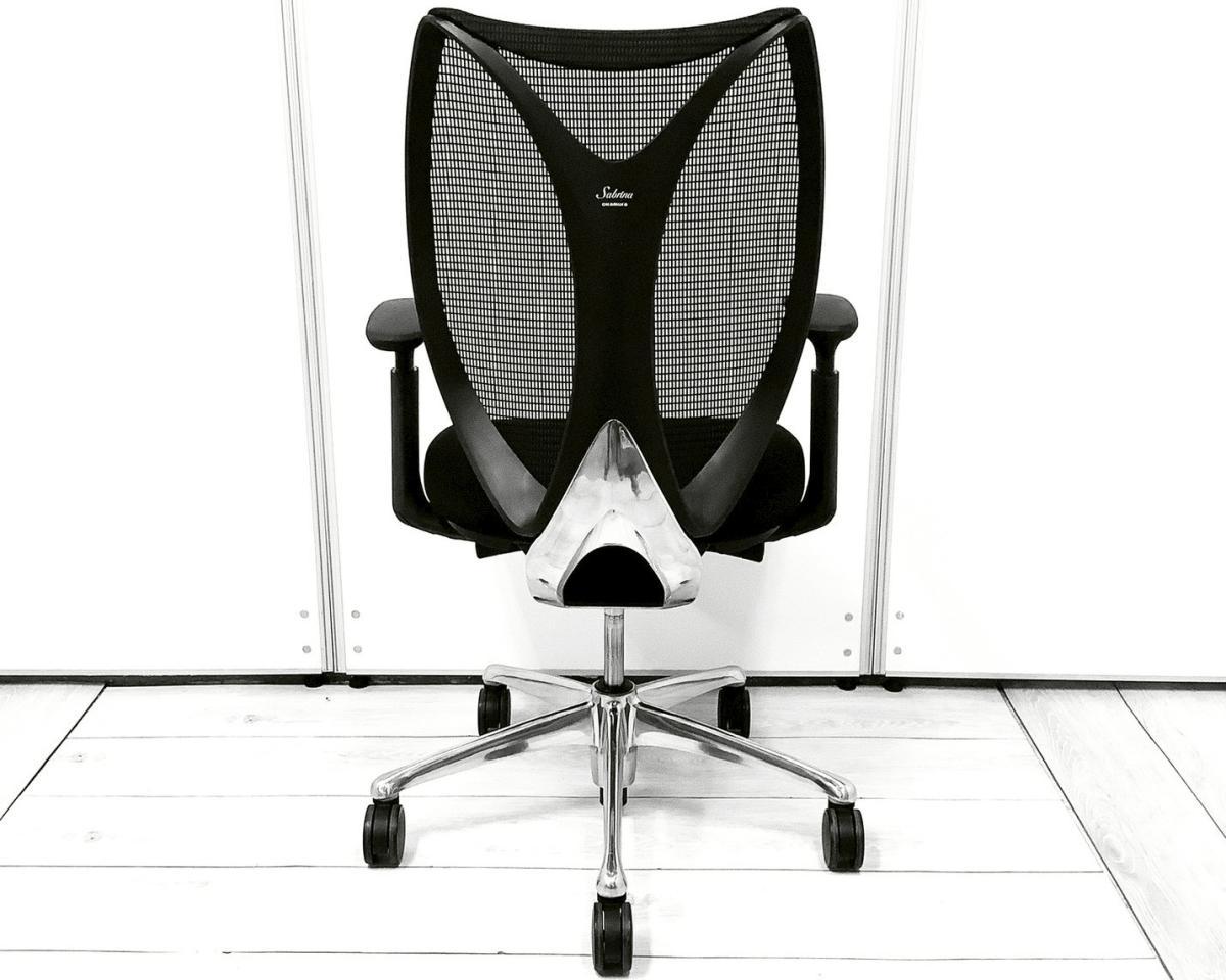 【在庫セール品・1脚限定】【T4】■オカムラ(okamura)製 サブリナ(Sabrina)チェア 肘付ハイバック ■ブラック ■背面メッシュ ■可動肘【優れたデザイン性の高級チェア!リングフレームとメッシュが背中をやさしく受け止める!】